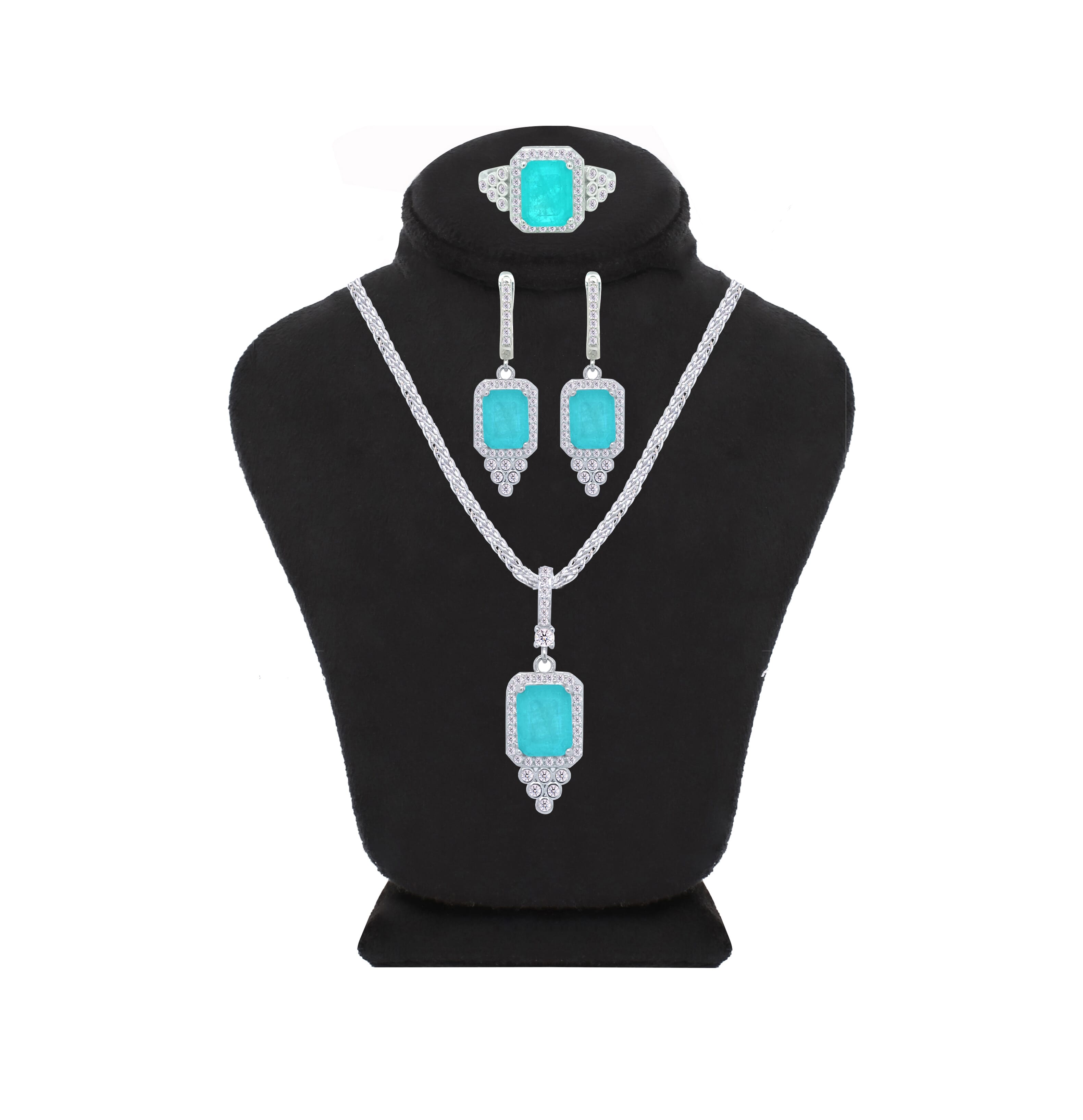 عصفور كريستال طقم فضة عيار 925 بتصميم اميرالد زخرفي تركواز مرصع بفصوص الزركون - SD0051-GC-7