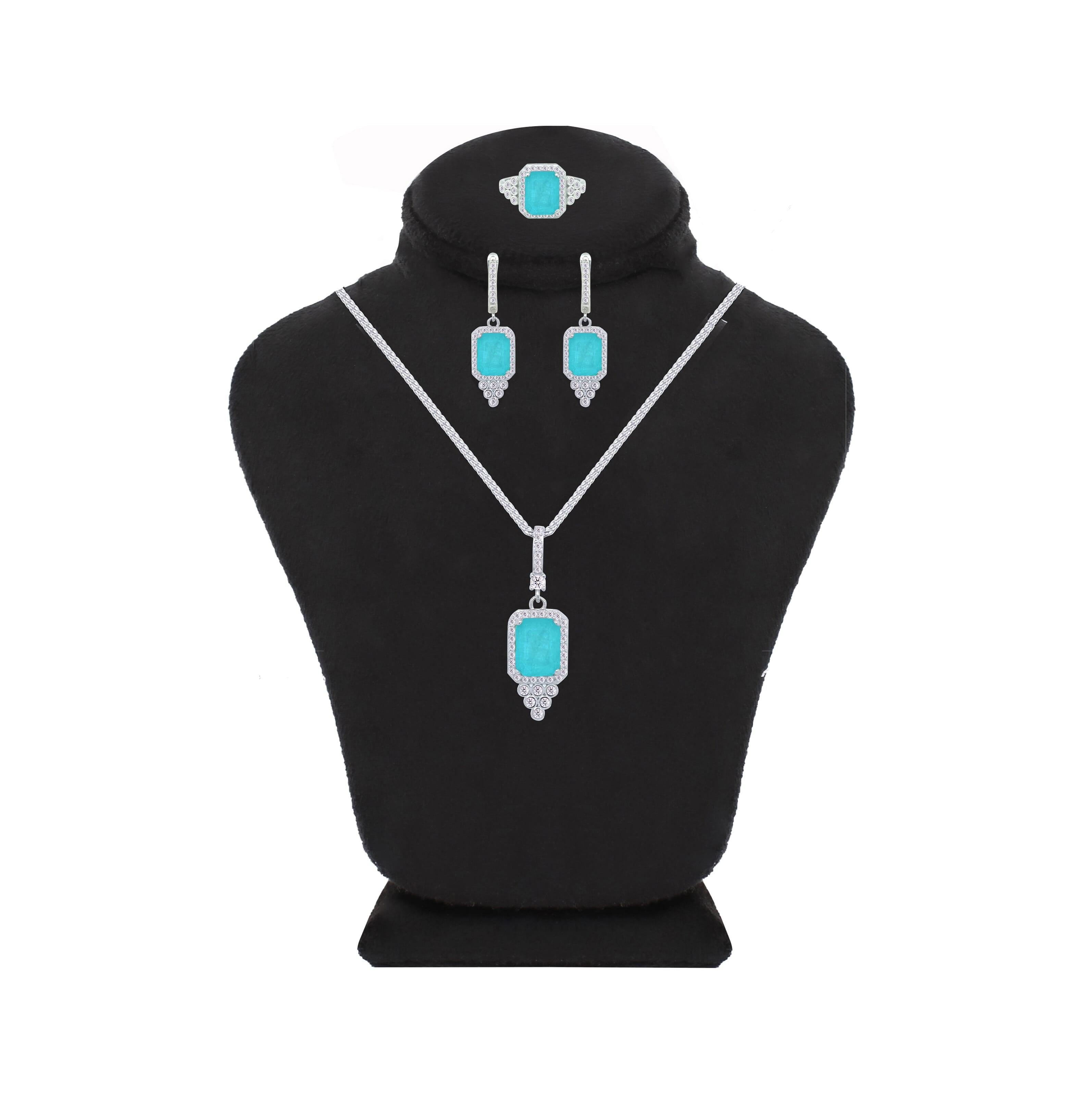عصفور كريستال طقم فضة عيار 925 بتصميم اميرالد زخرفي تركواز مرصع بفصوص الزركون - SD0051-GC-8