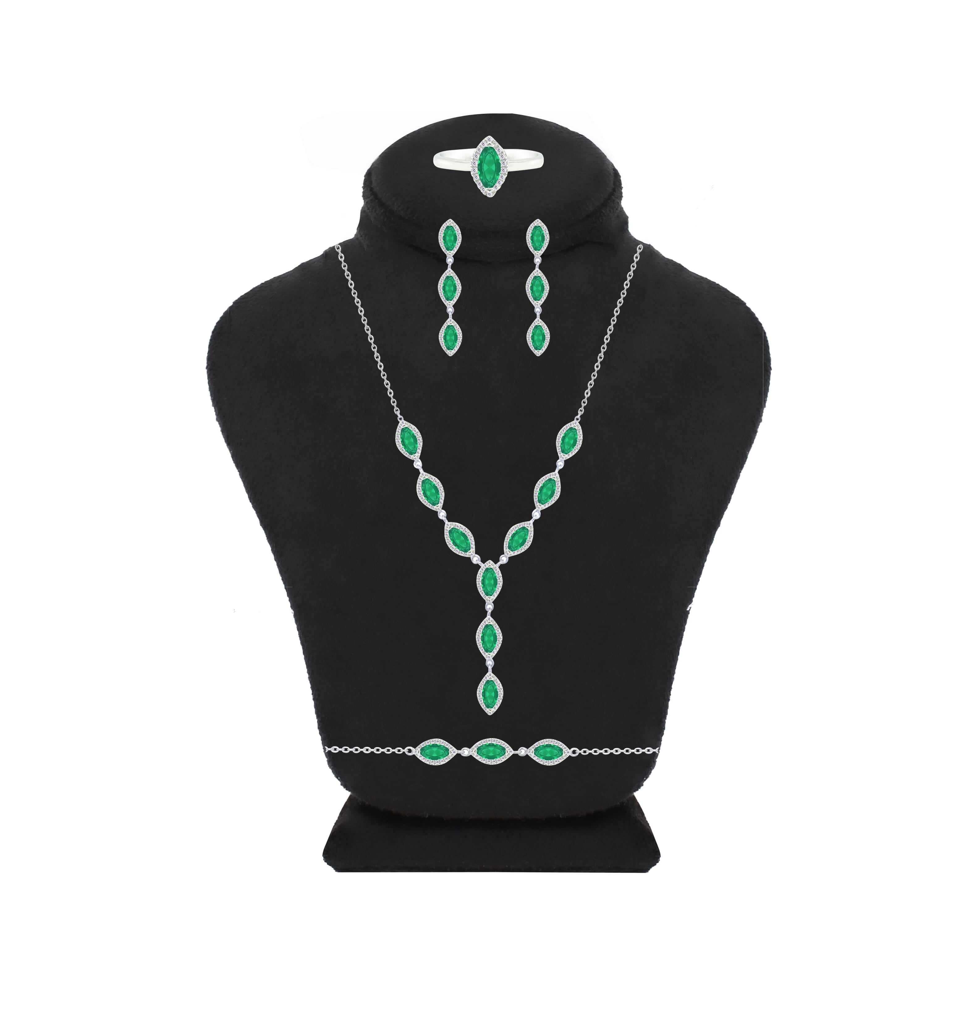 عصفور كريستال طقم فضة عيار 925 بتصميم ماركيز اخضر مرصع بالزركون - SD0095-G-8