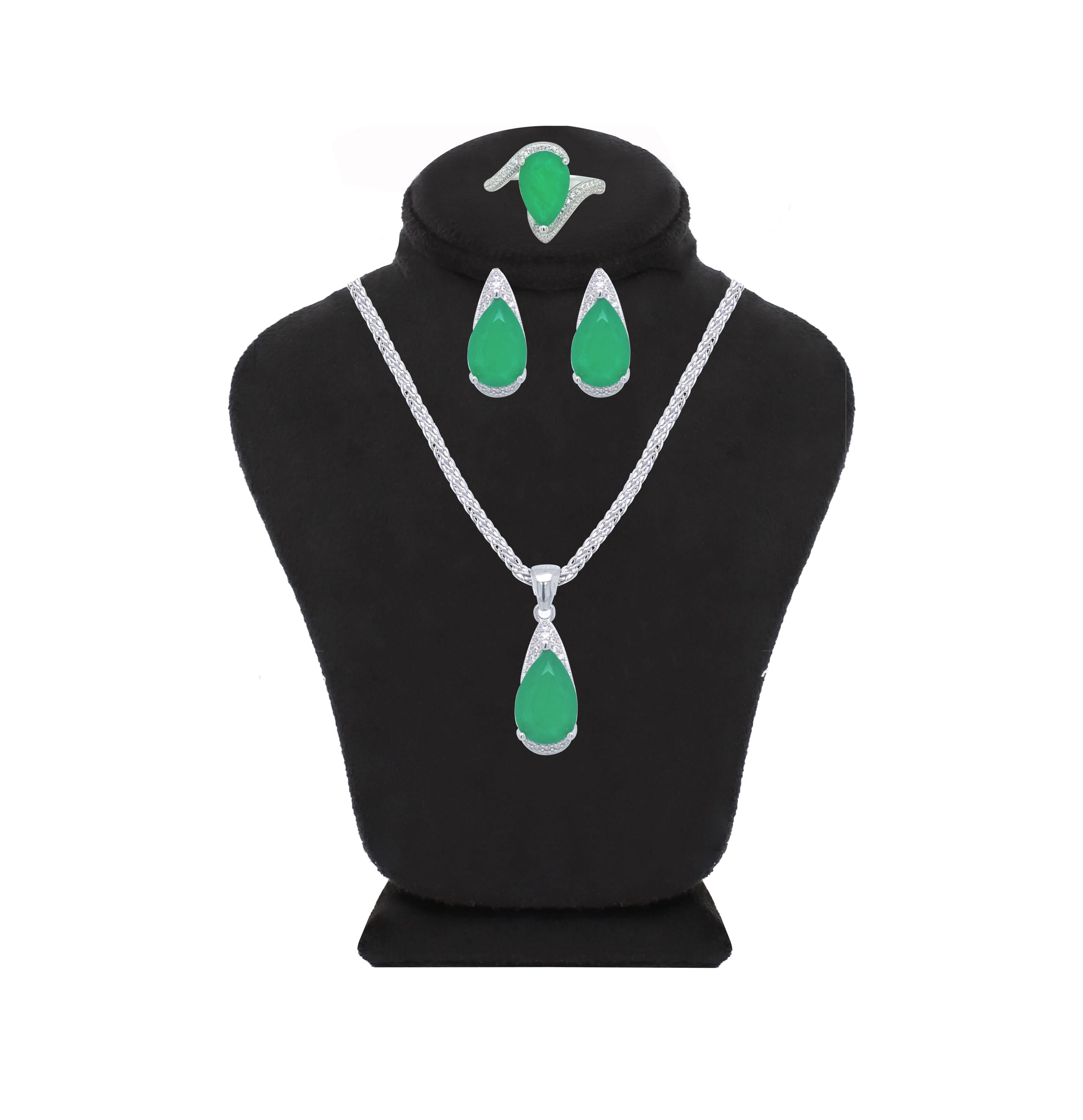 عصفور كريستال طقم فضة عيار 925 بتصميم كمثري اخضر مرصع بالزركون - SD0055-G-8