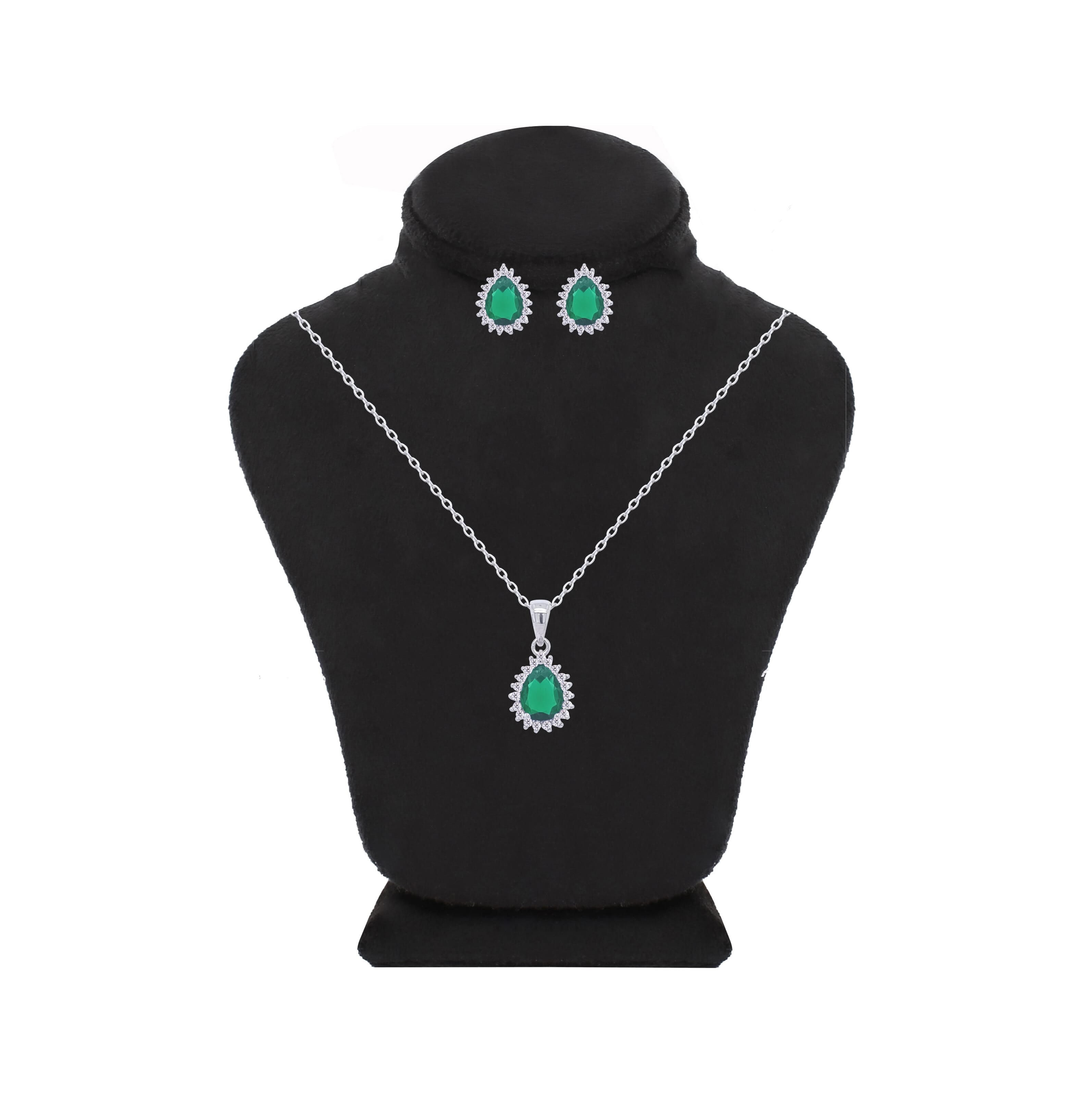 عصفور كريستال طقم فضة عيار 925 بتصميم كمثري اخضر مرصع بالزركون - SM0035-G