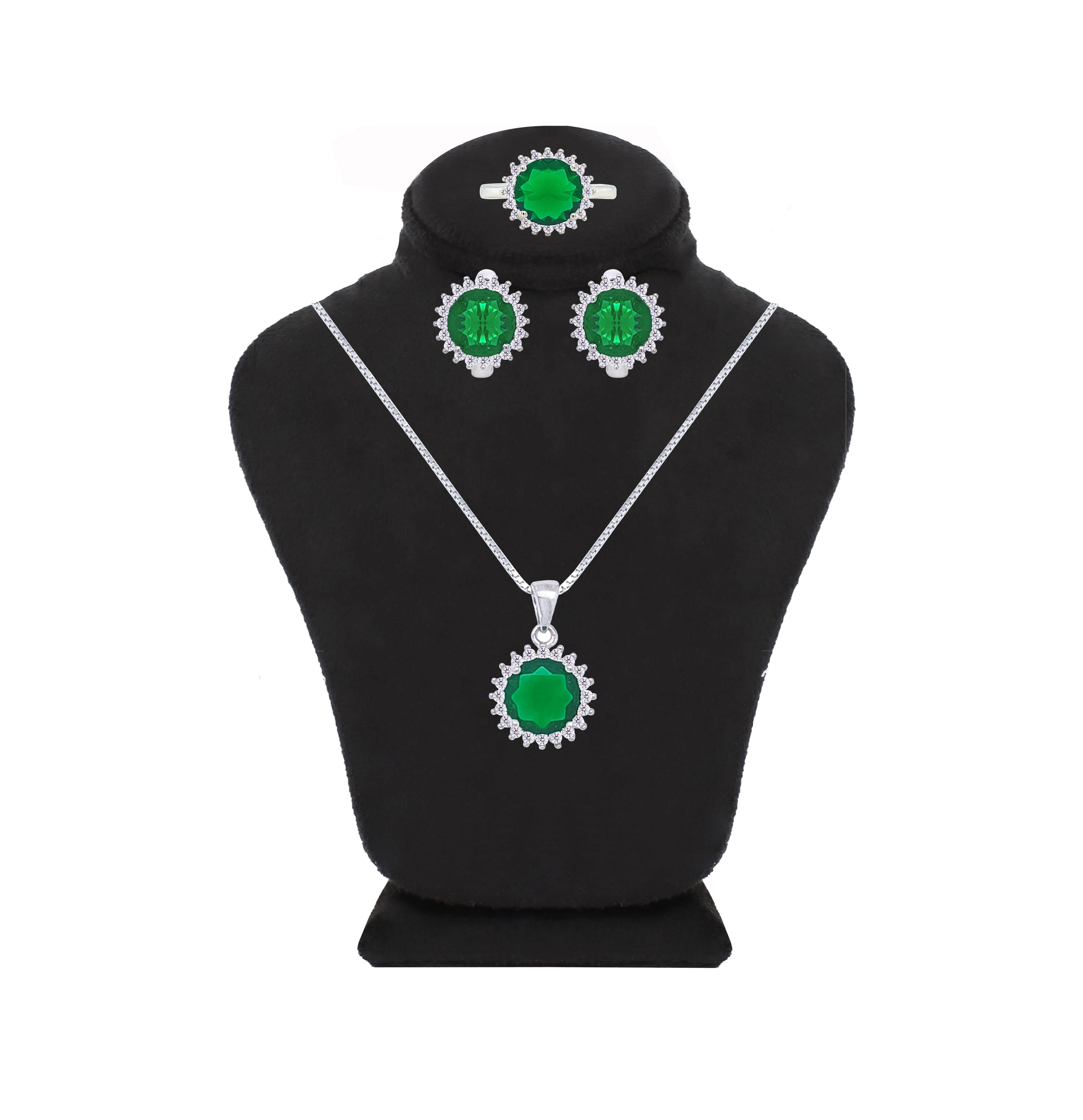 عصفور كريستال طقم فضة عيار 925 بتصميم دائري اخضر مرصع بالزركون