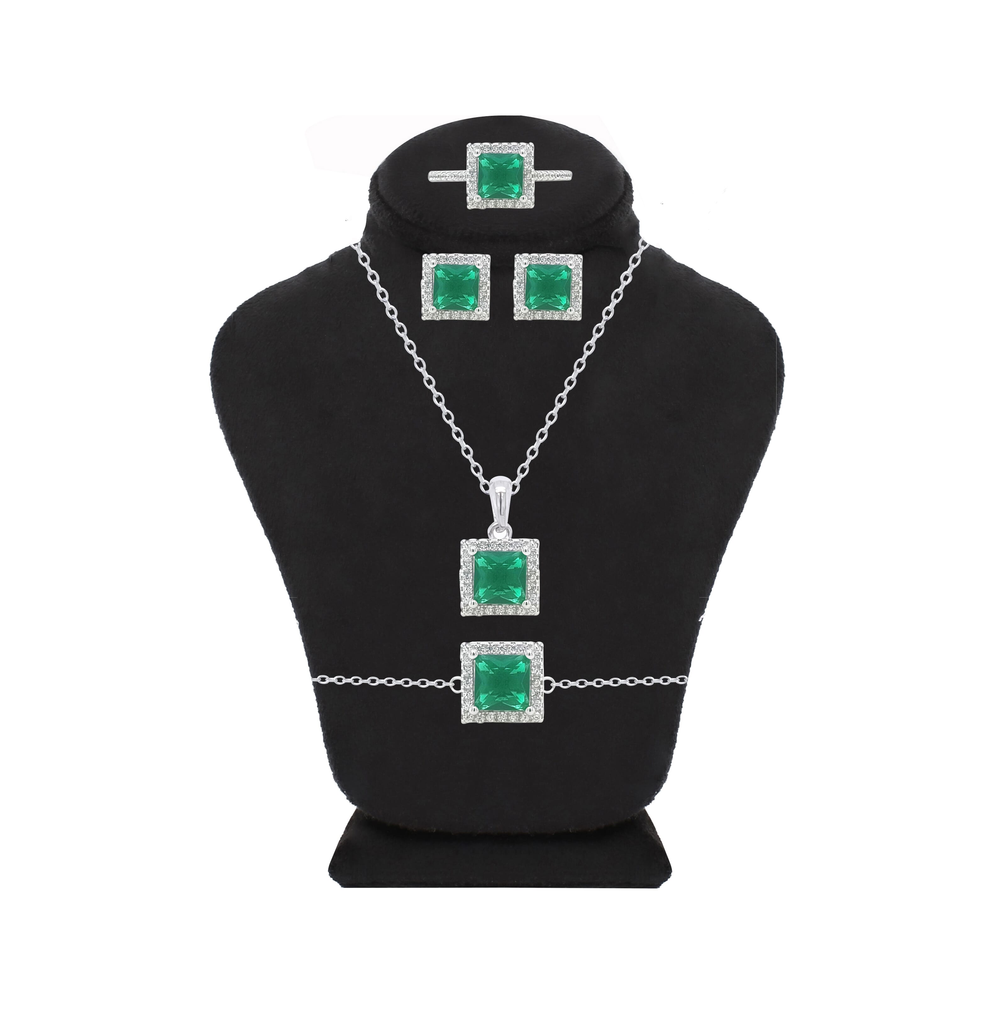 Asfour Crystal Jewelry Set With Emerald Square Design In 925 Sterling Silver-SD0037-G-8