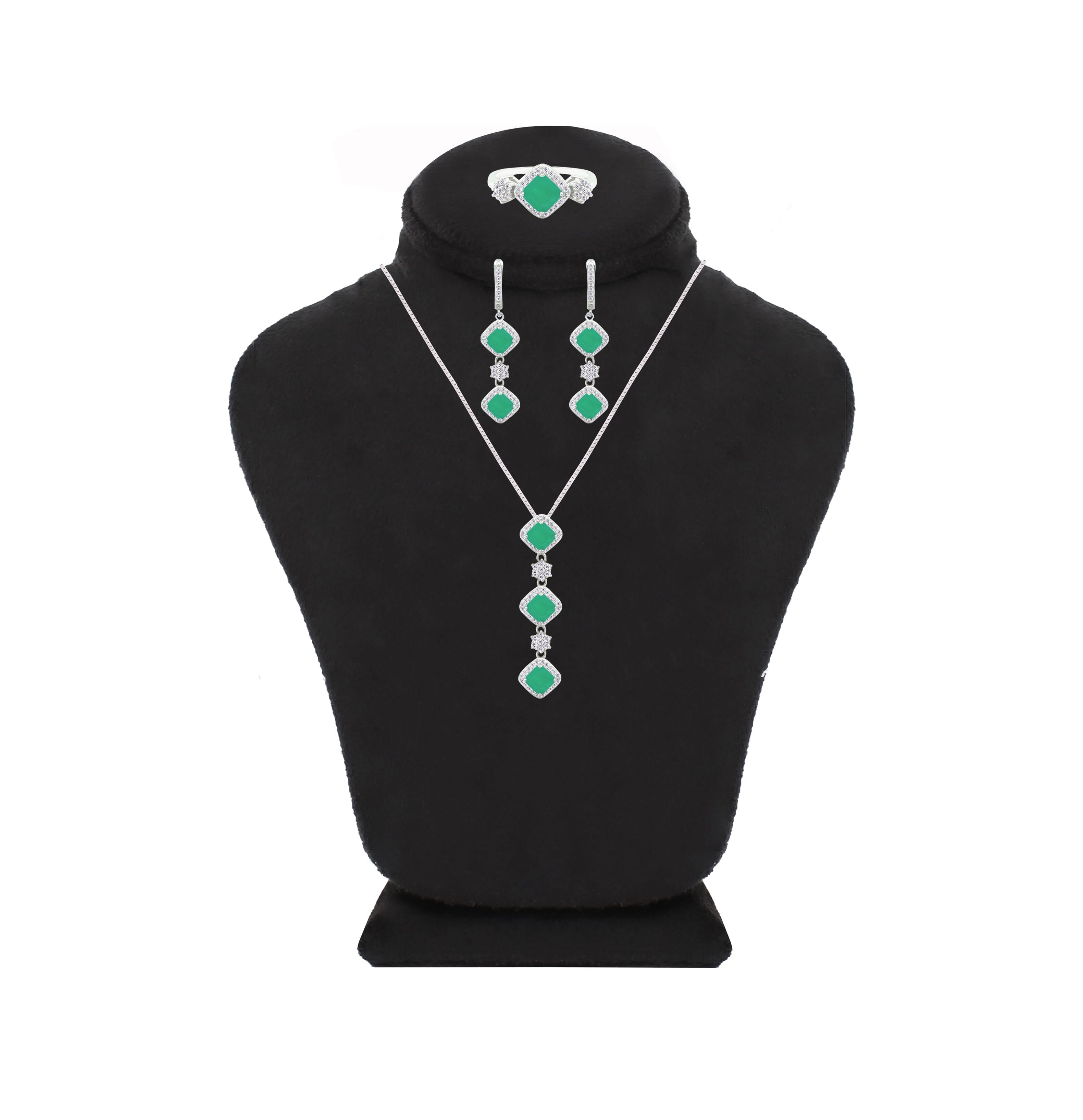 عصفور كريستال طقم فضة عيار 925 بتصميم مربعات خضراء مرصعة بالزركون - SD0058-G-8