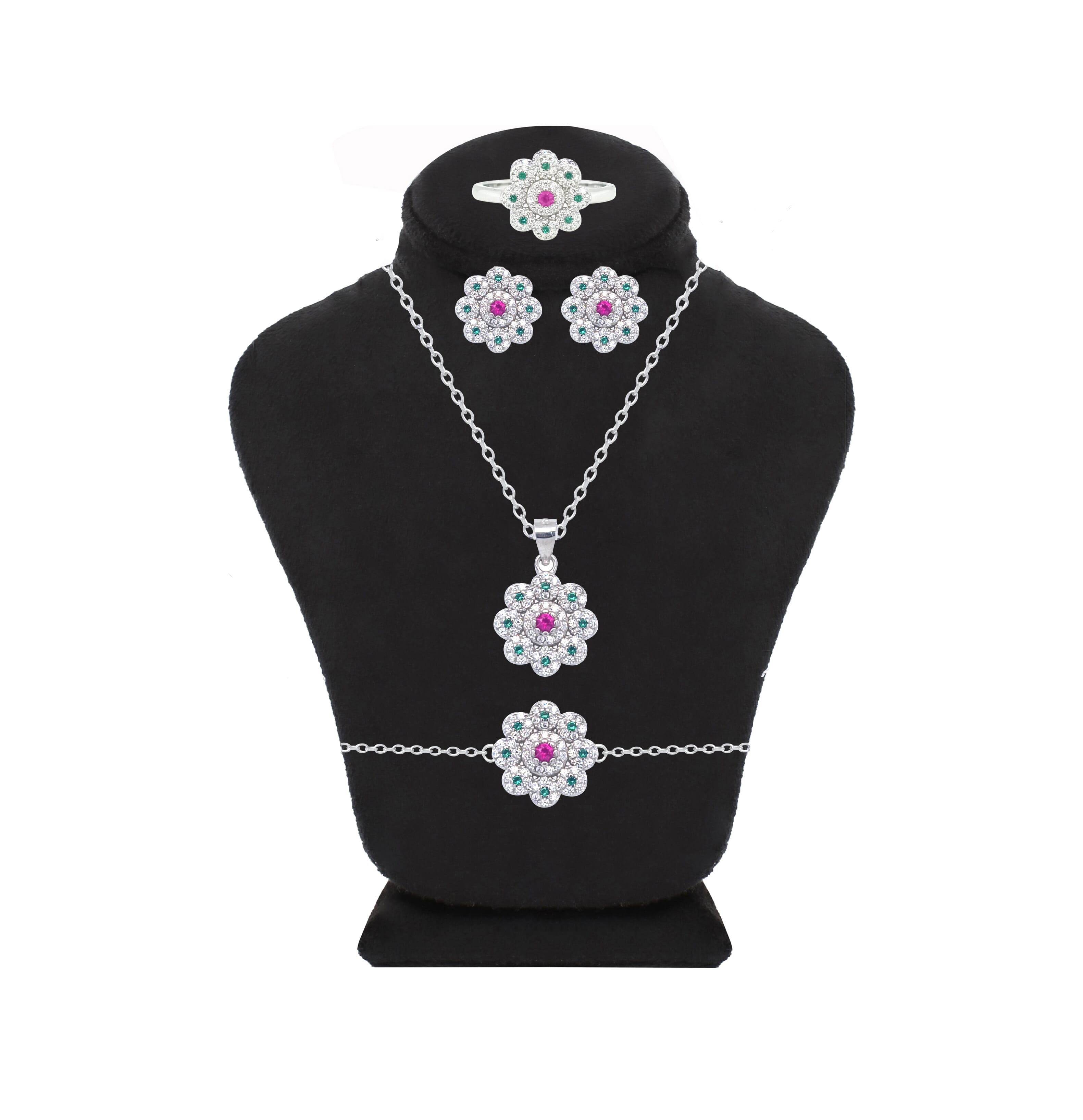 Asfour Crystal Jewelry Set With Flower Design In 925 Sterling Silver-SD0038-8