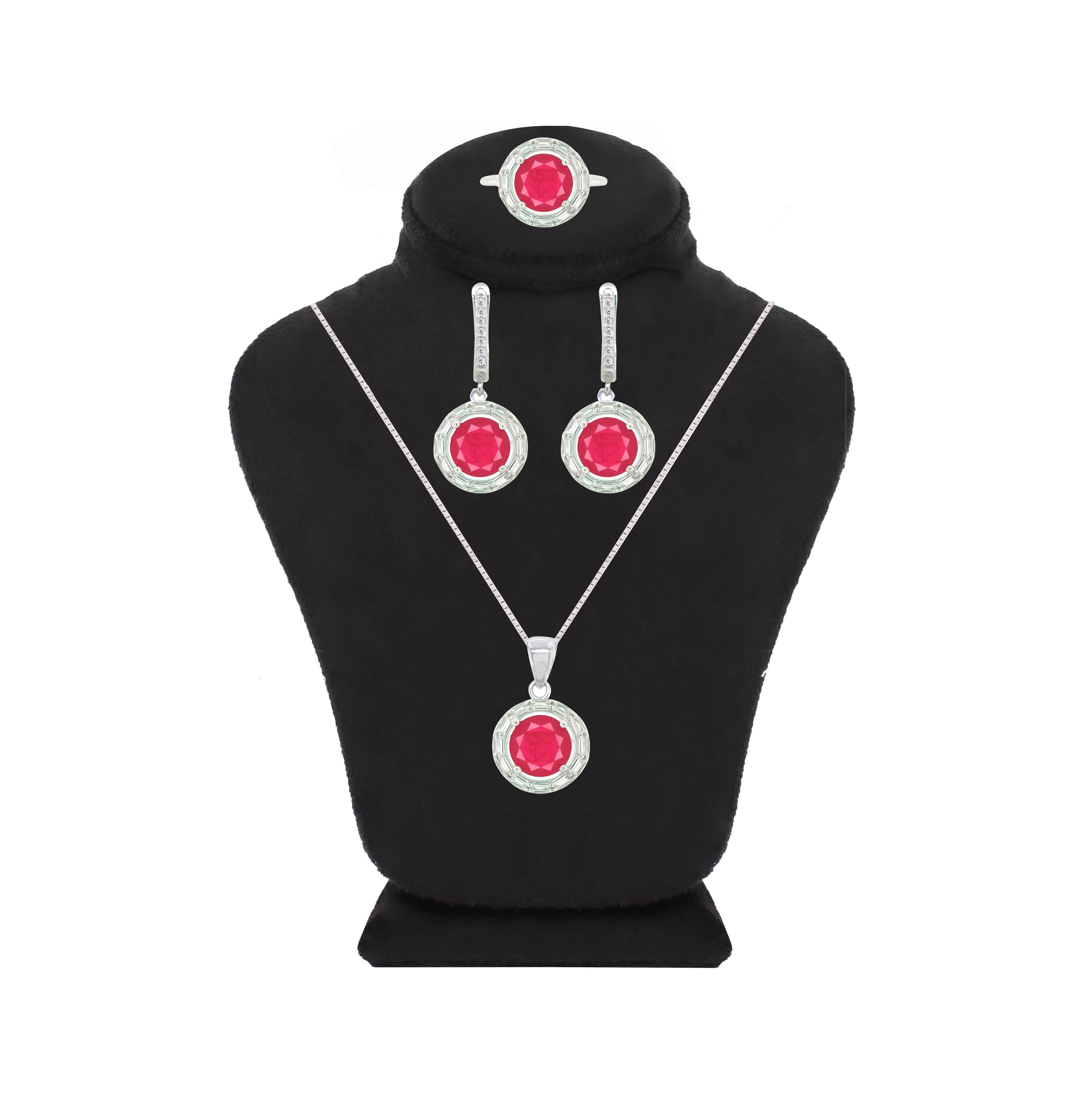 عصفور كريستال طقم فضة عيار 925 بتصميم دائري فوشيا مرصع بالزركون - SD0062-F-8