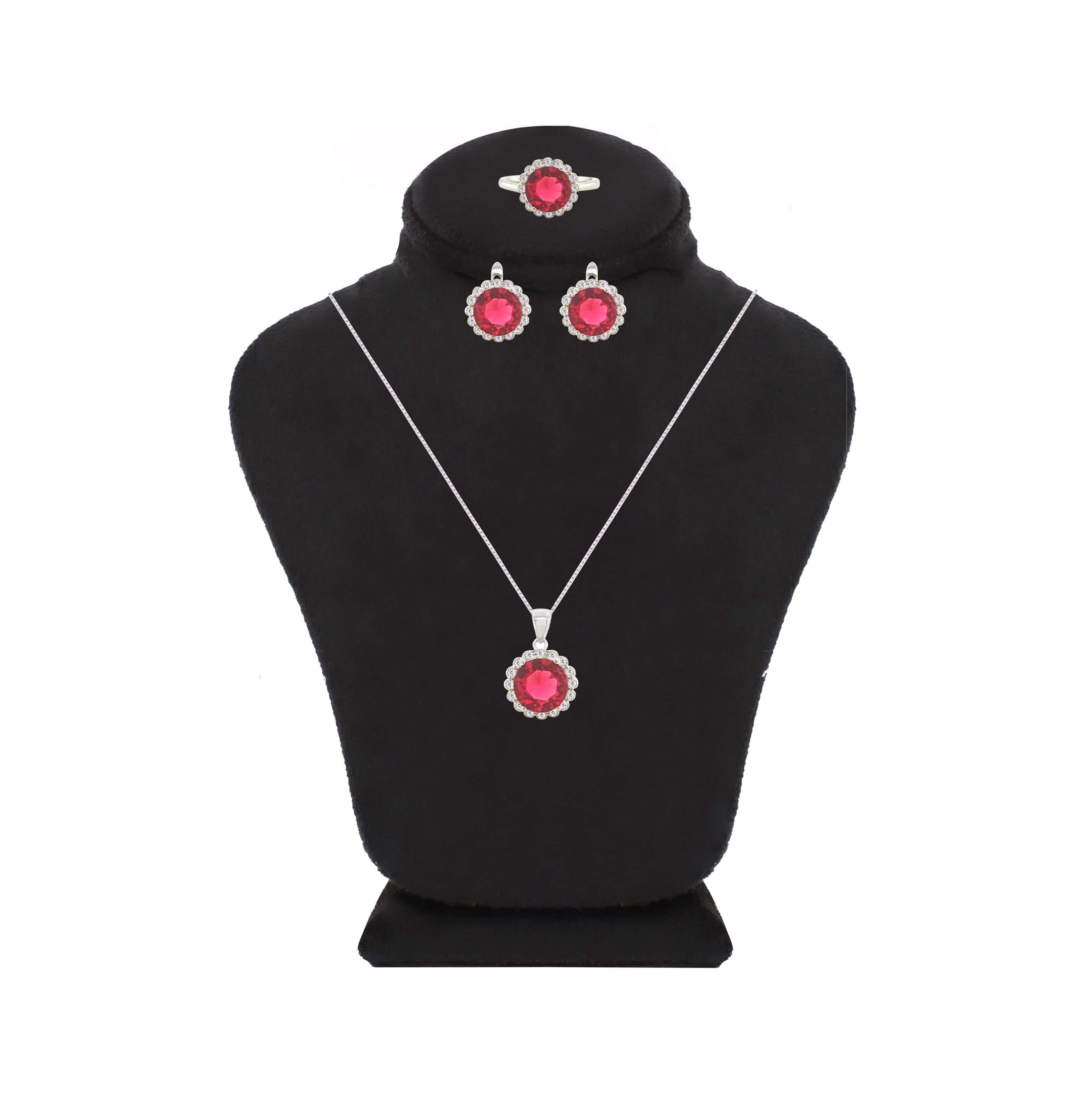 عصفور كريستال طقم فضة عيار 925 بتصميم دائري فوشيا مرصع بالزركون - SD0078-F-9