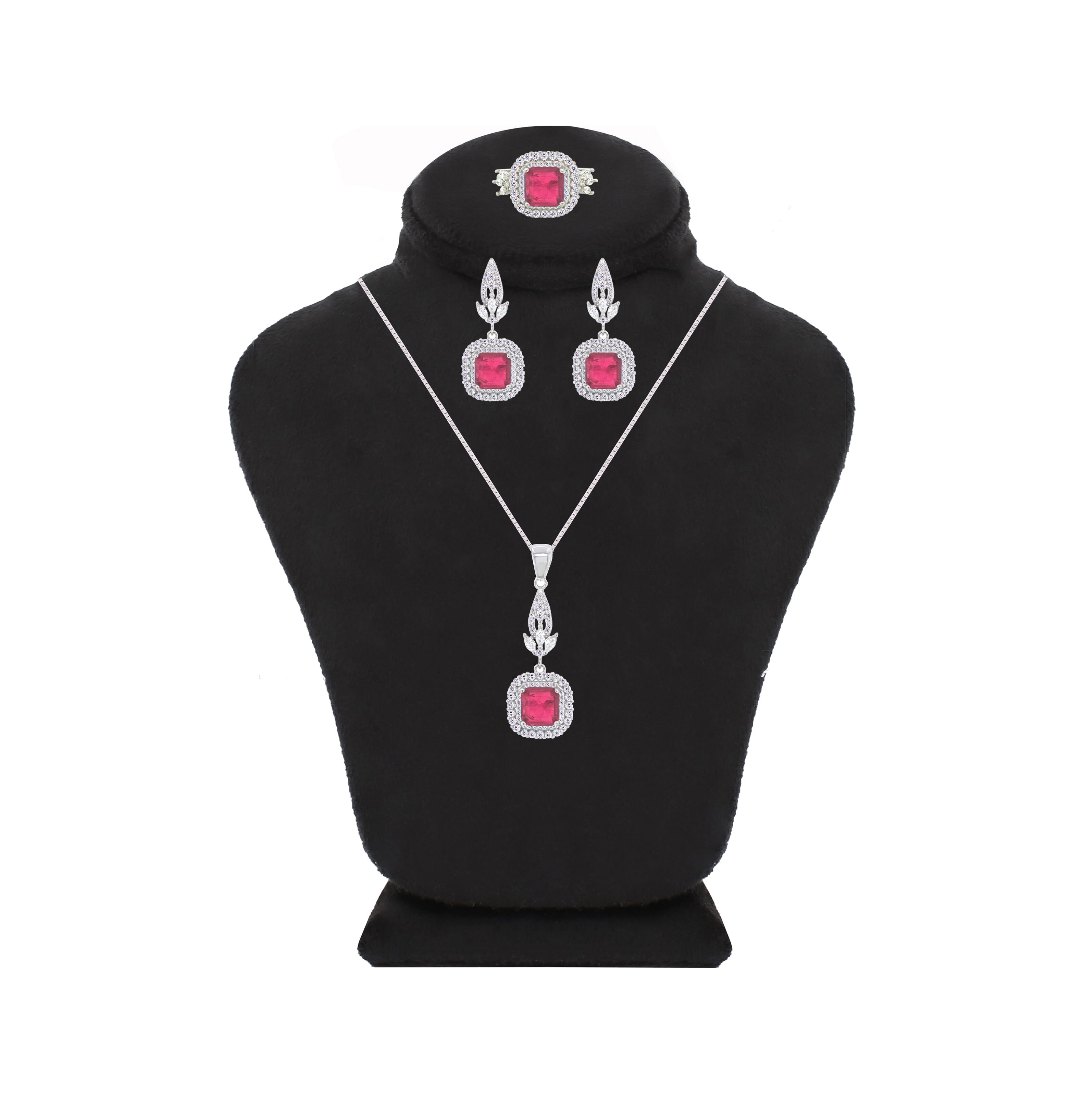 عصفور كريستال طقم فضة عيار 925 بتصميم مربع فوشيا مرصع بفصوص الزركون - SD0073-F-8