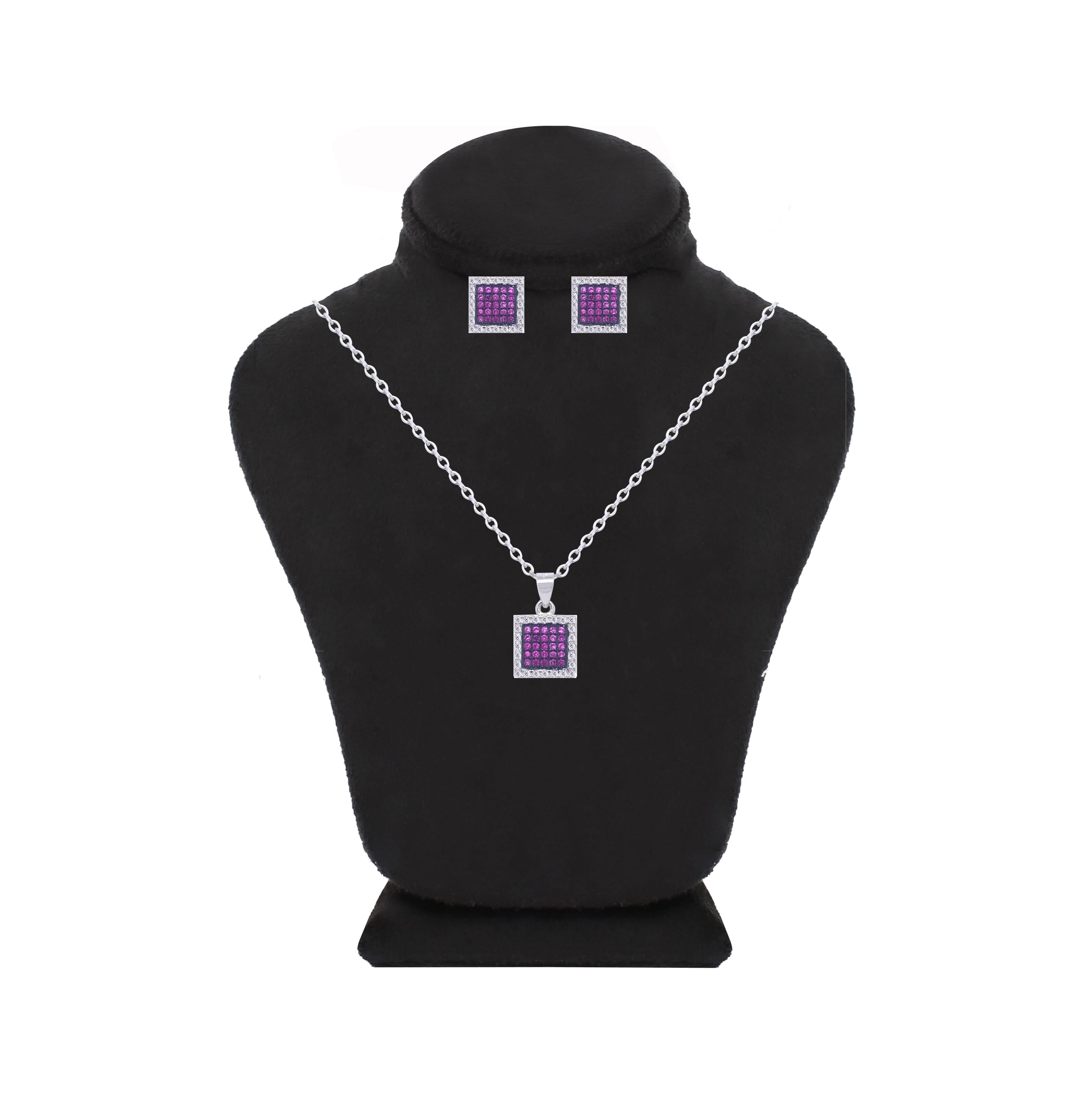 عصفور كريستال طقم فضة عيار 925 بتصميم مربع فوشيا مرصع بفصوص الزركون - SD0122-F