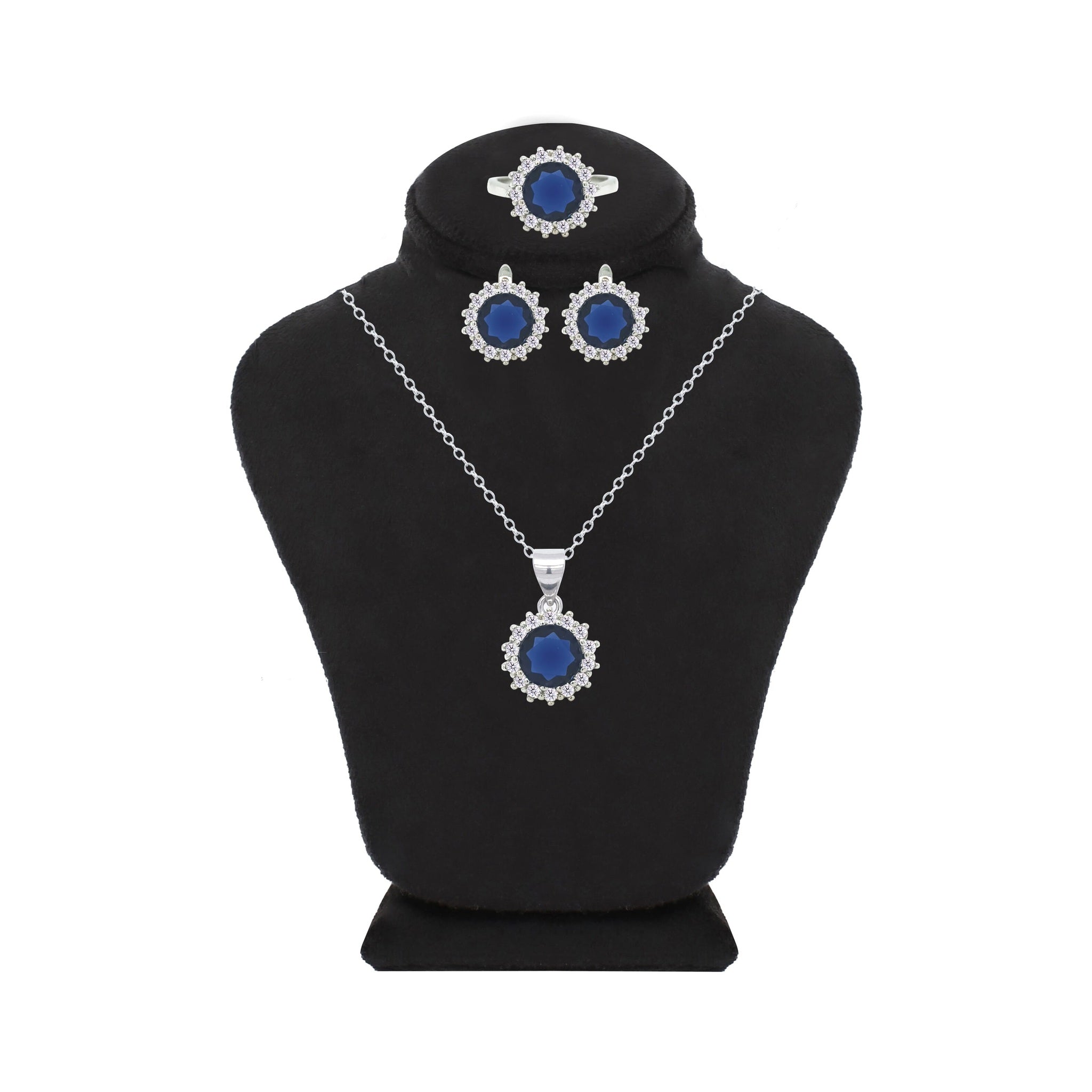 عصفور كريستال طقم فضة عيار 925 بتصميم دائري ازرق مرصع بالزركون - SD0113-B-7