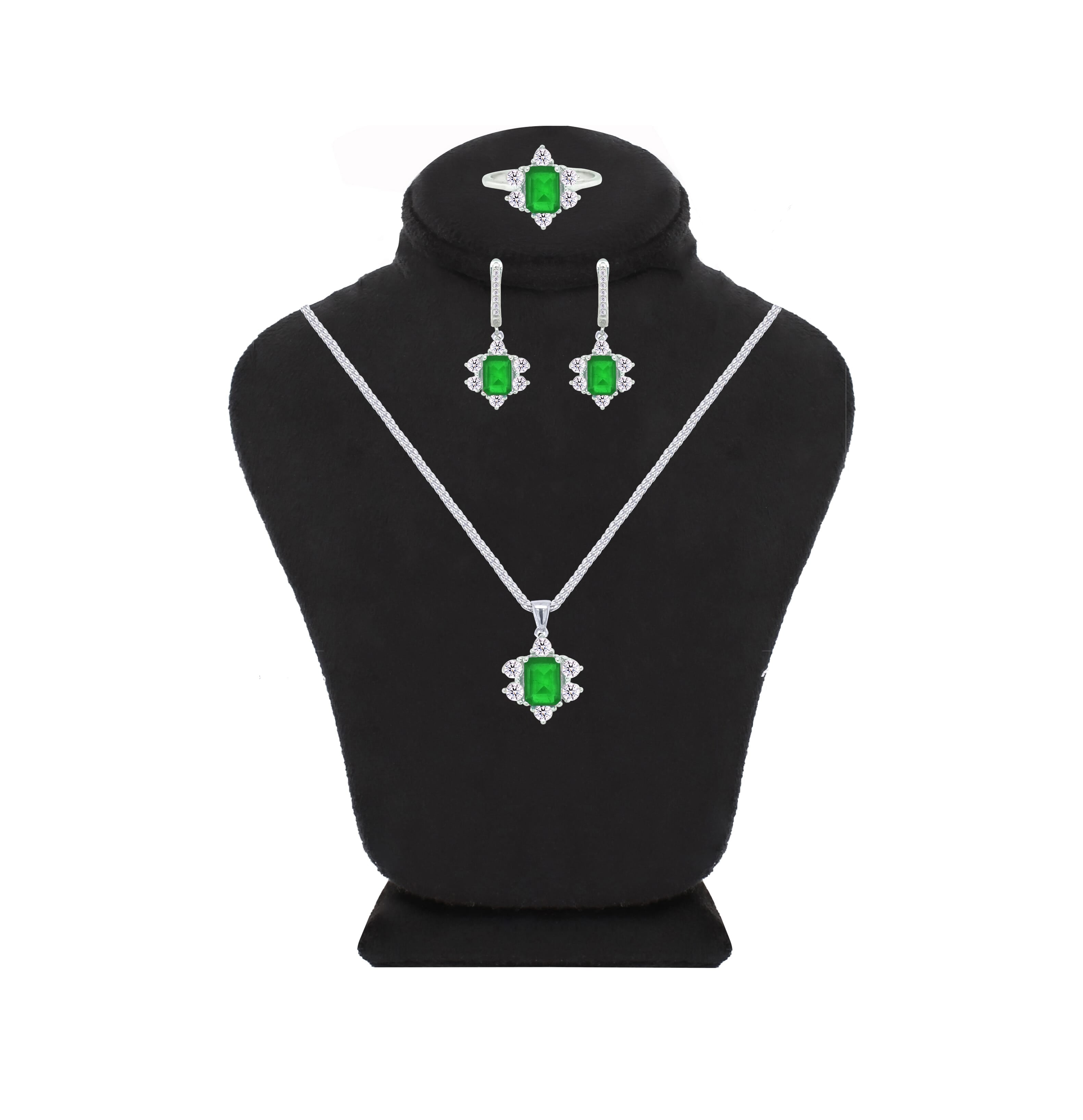 عصفور كريستال طقم فضة عيار 925 بتصميم فني زخرفي اخضر مرصع بالزركون - SD0054-G-7