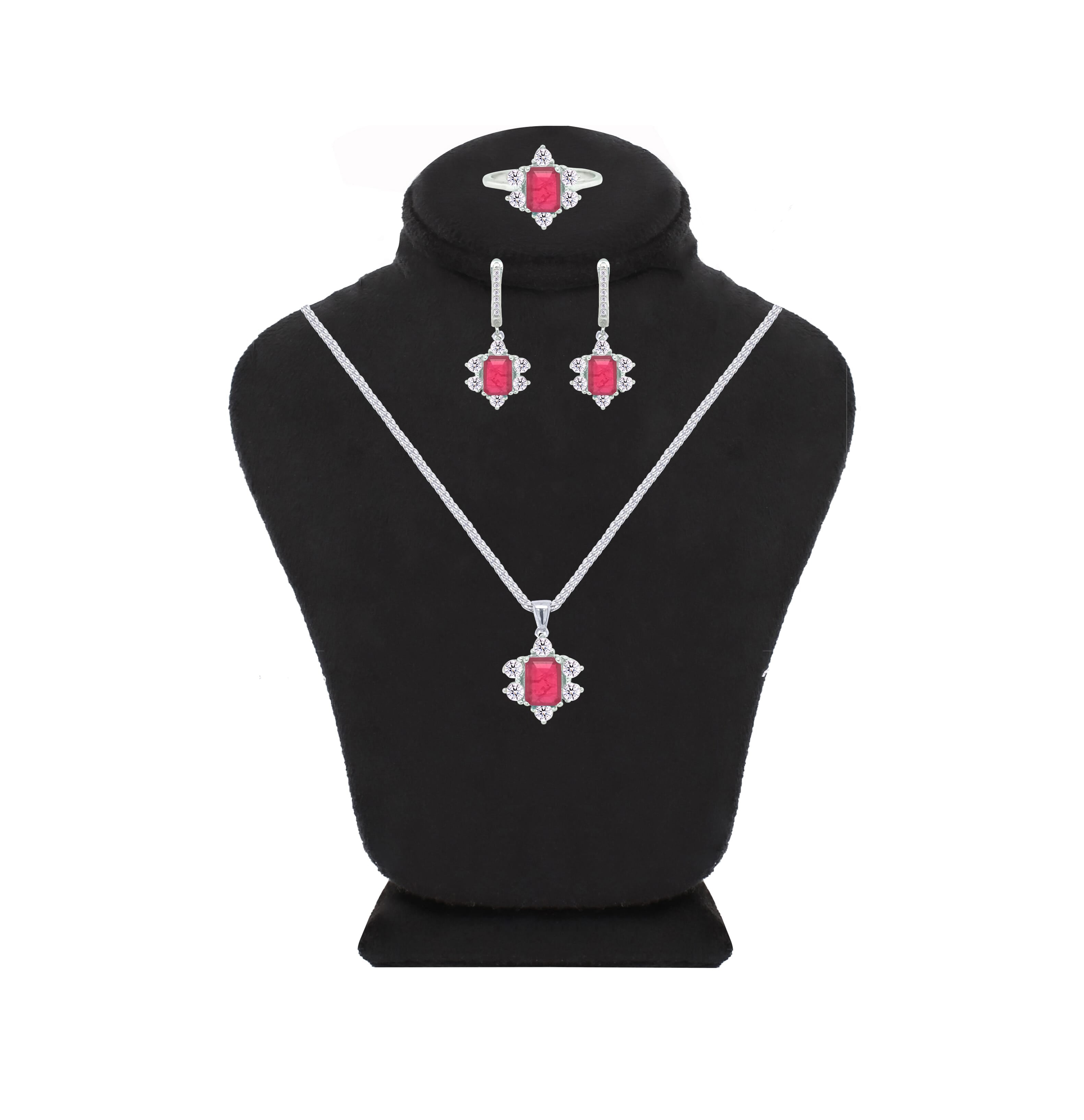 عصفور كريستال طقم فضة عيار 925 بتصميم اميرالد فوشيا زخرفي مرصع بالزركون - SD0054-F-9