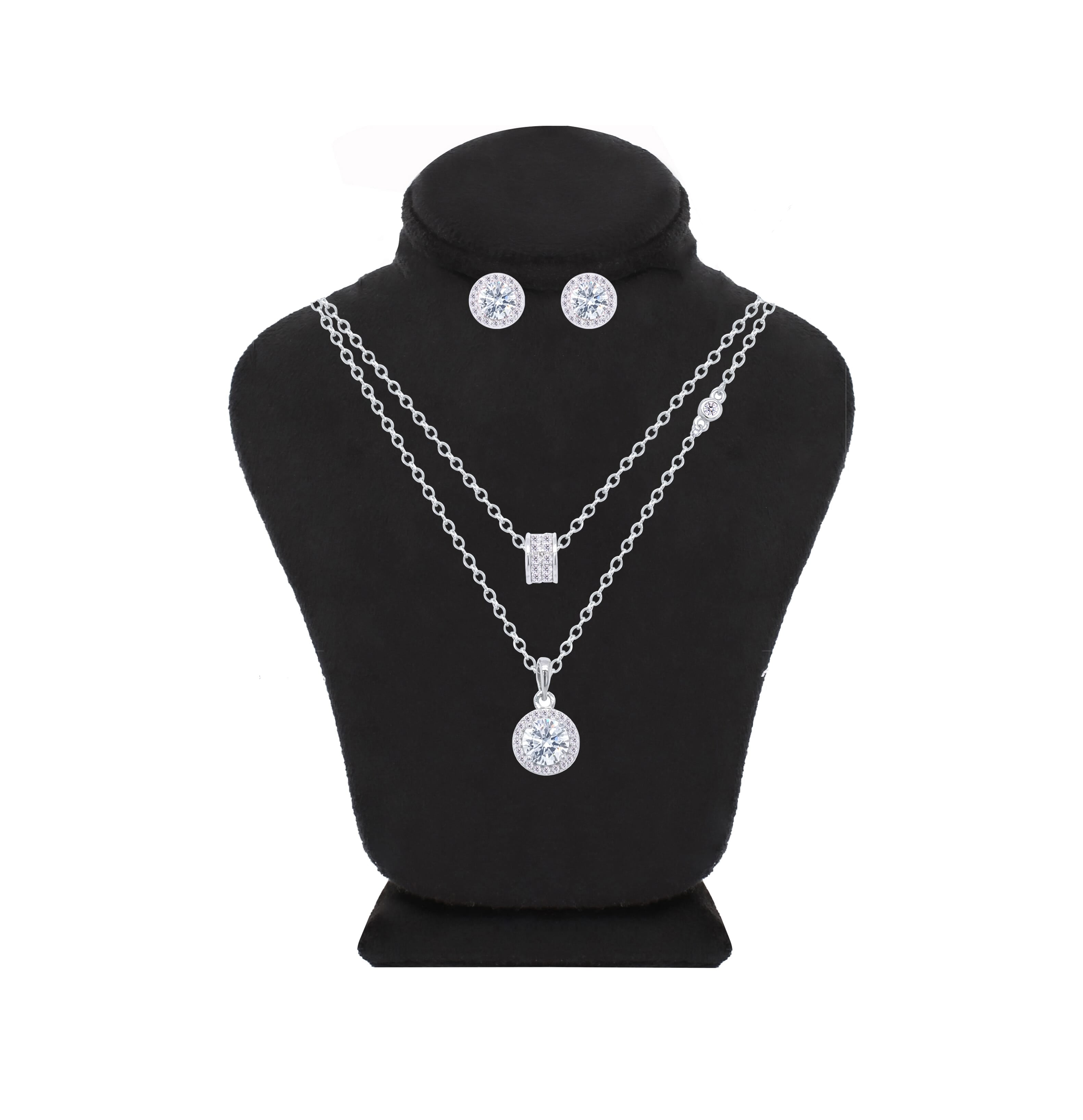 عصفور كريستال طقم فضة عيار 925 بتصميم دائري مرصع بالزركون - SM0021