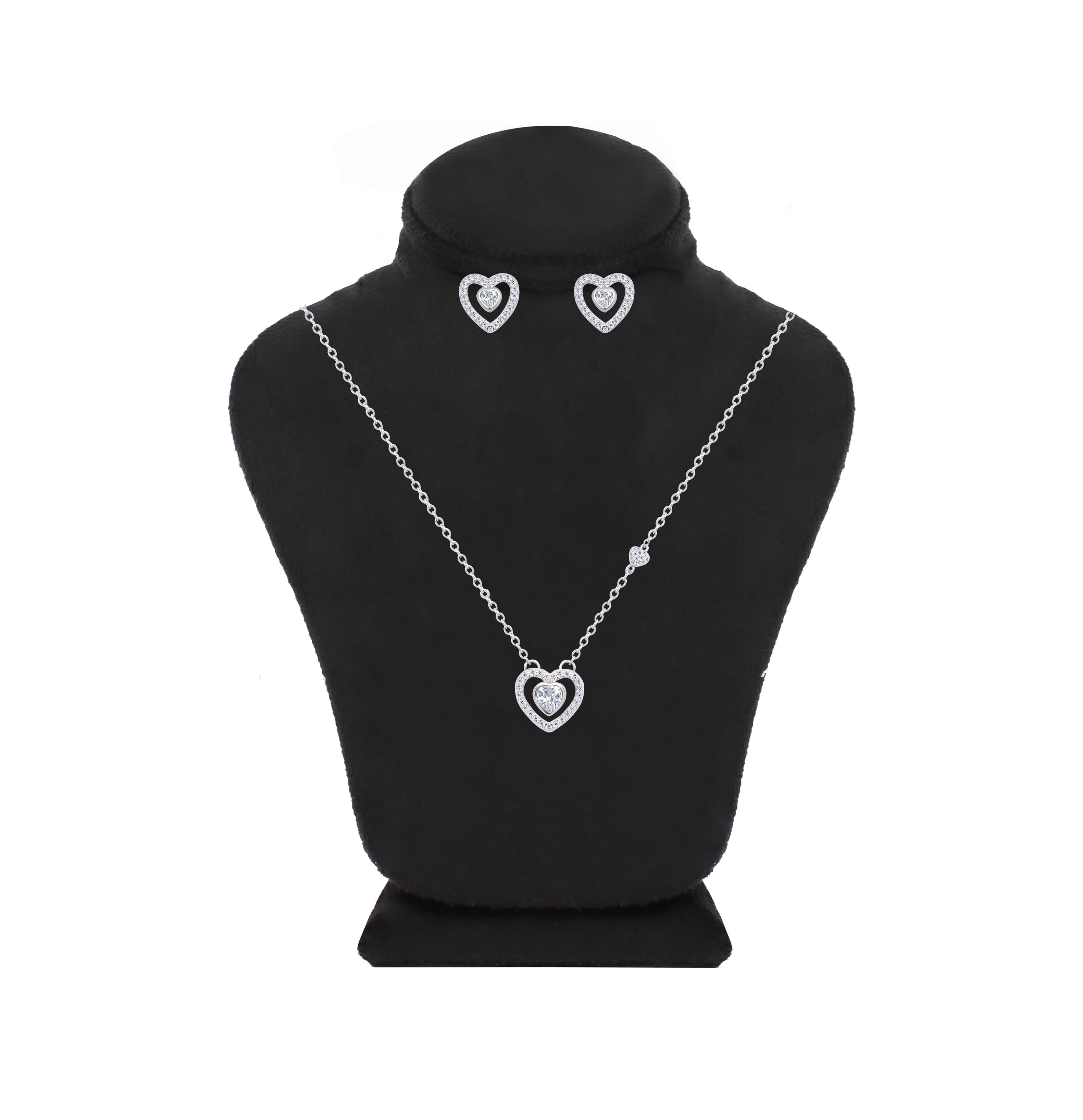 عصفور كريستال طقم فضة عيار 925 علي شكل قلب مرصع بالزركون - SM0016