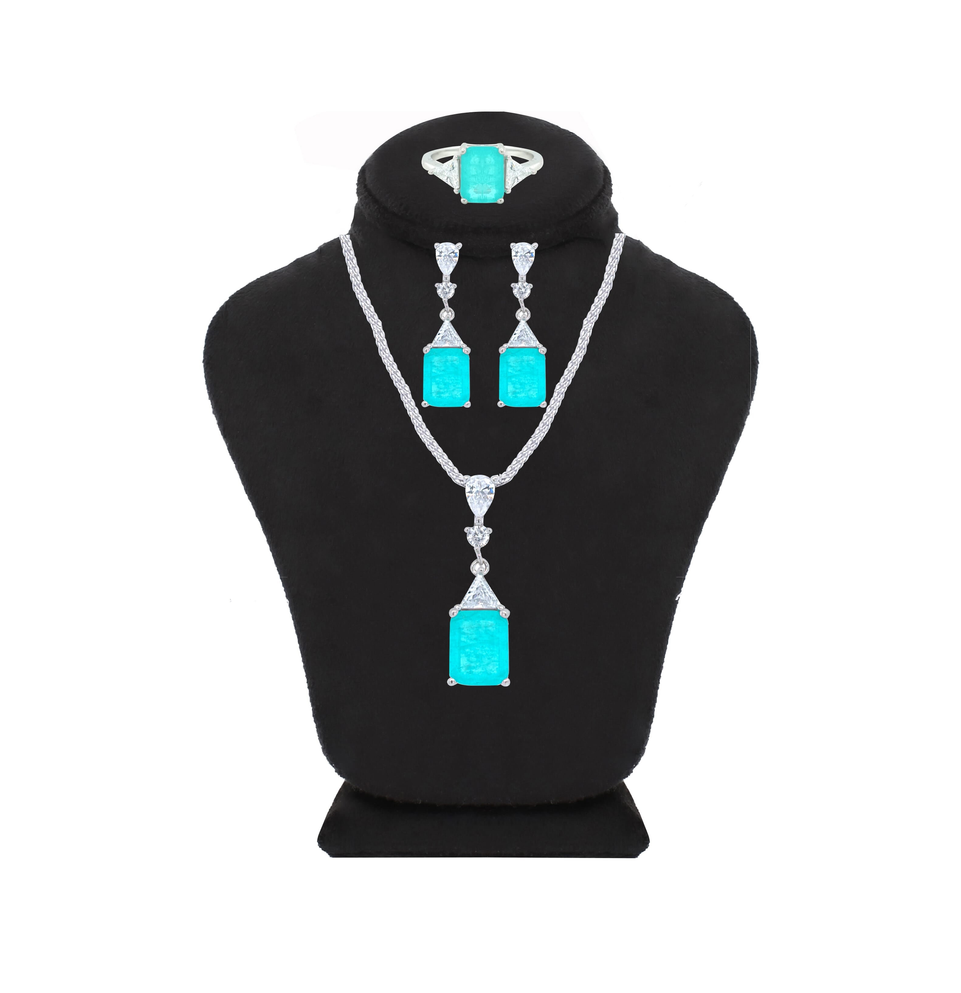 عصفور كريستال طقم فضة عيار 925 بتصميم اميرالد تركواز فاتح مرصع بالزركون - SD0074-LGC-9