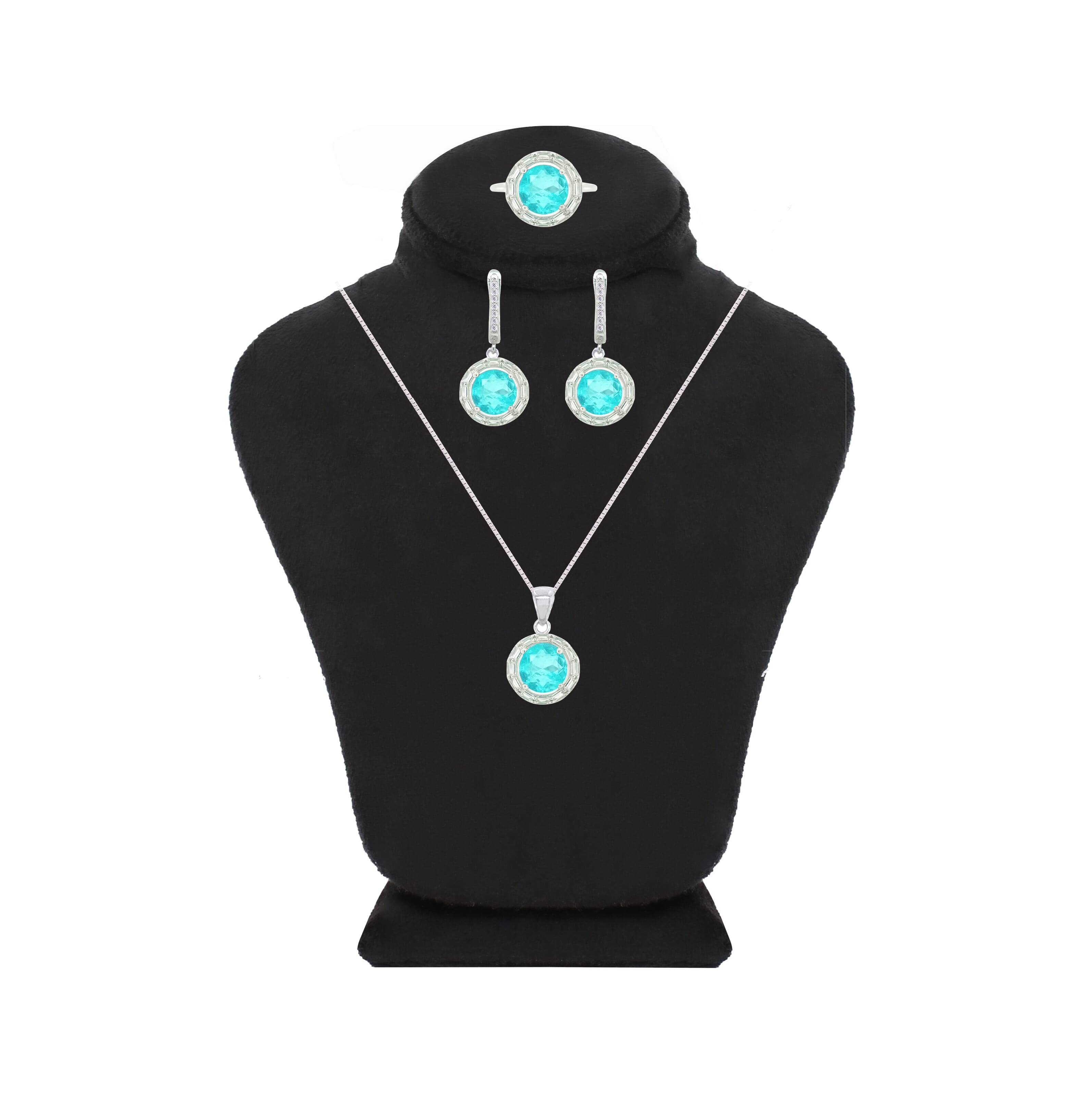 عصفور كريستال طقم فضة عيار 925 بتصميم دائري لون تركواز فاتح مرصع بالزركون - SD0062-LGC-7