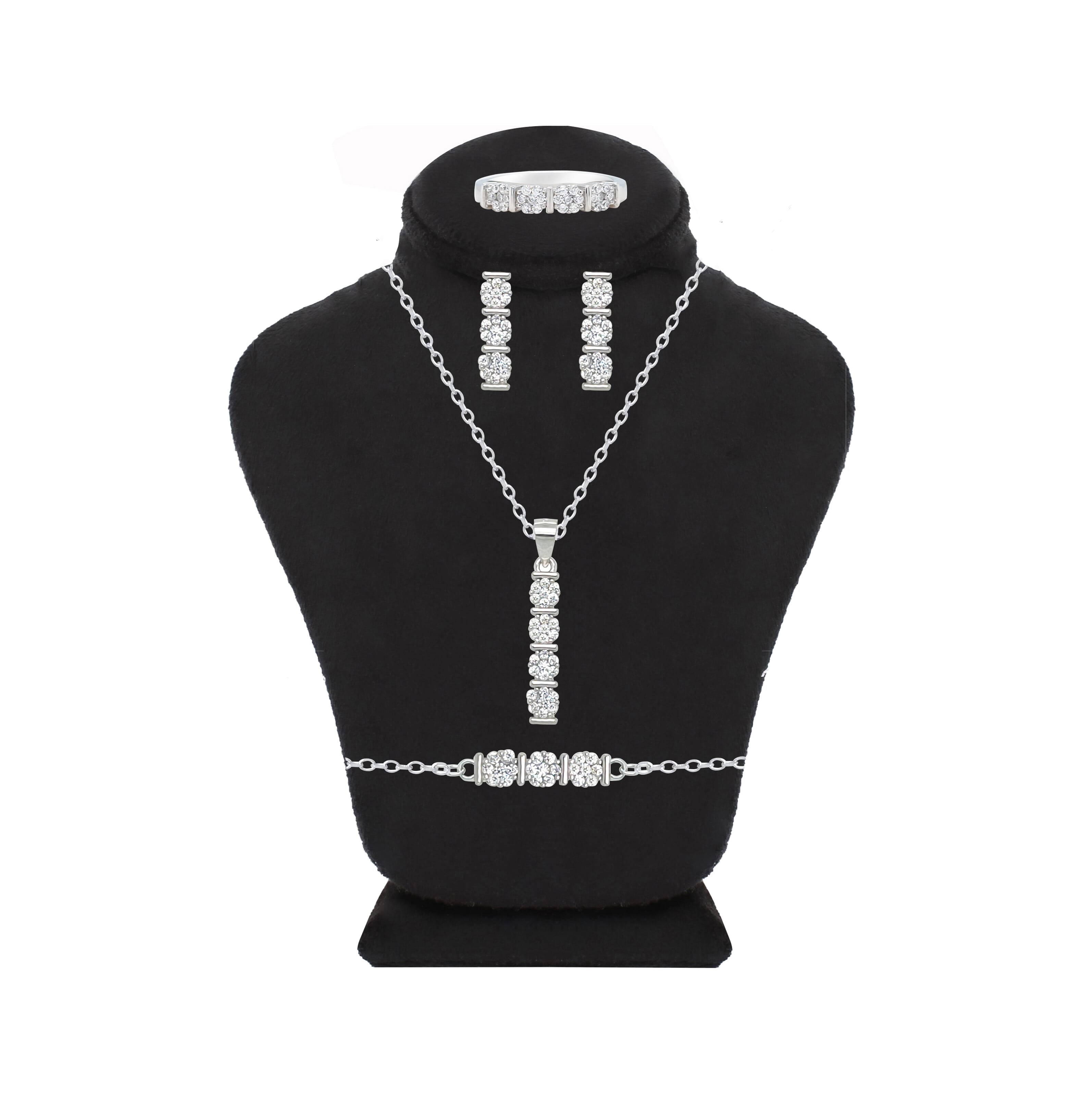 Asfour Crystal Jewelry Set With Linear Round Zircon Design In 925 Sterling Silver-SD0041-7