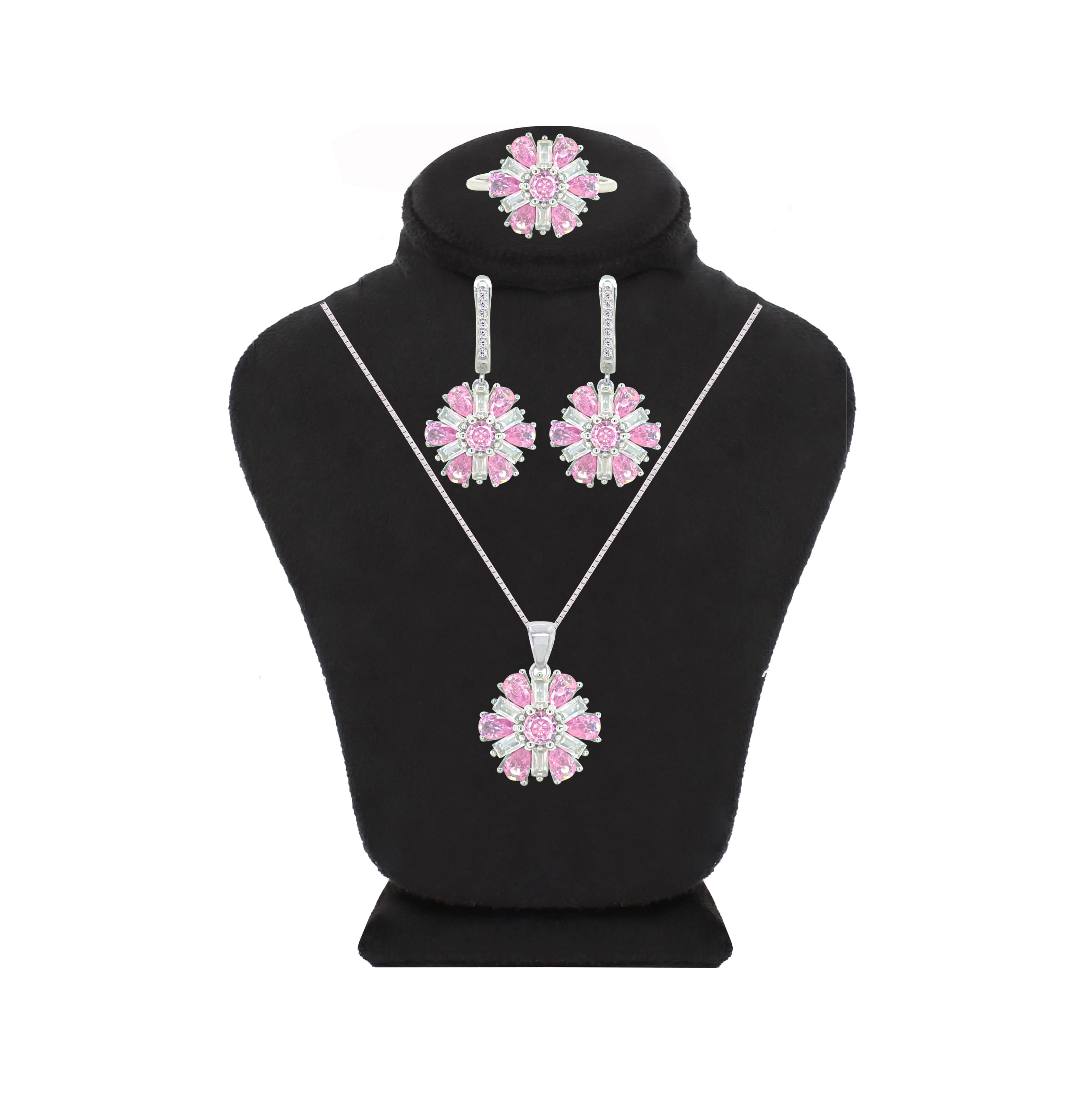 عصفور كريستال طقم فضة عيار 925 علي شكل وردة لون وردي مرصعة بالزركون - SD0066-WO-9
