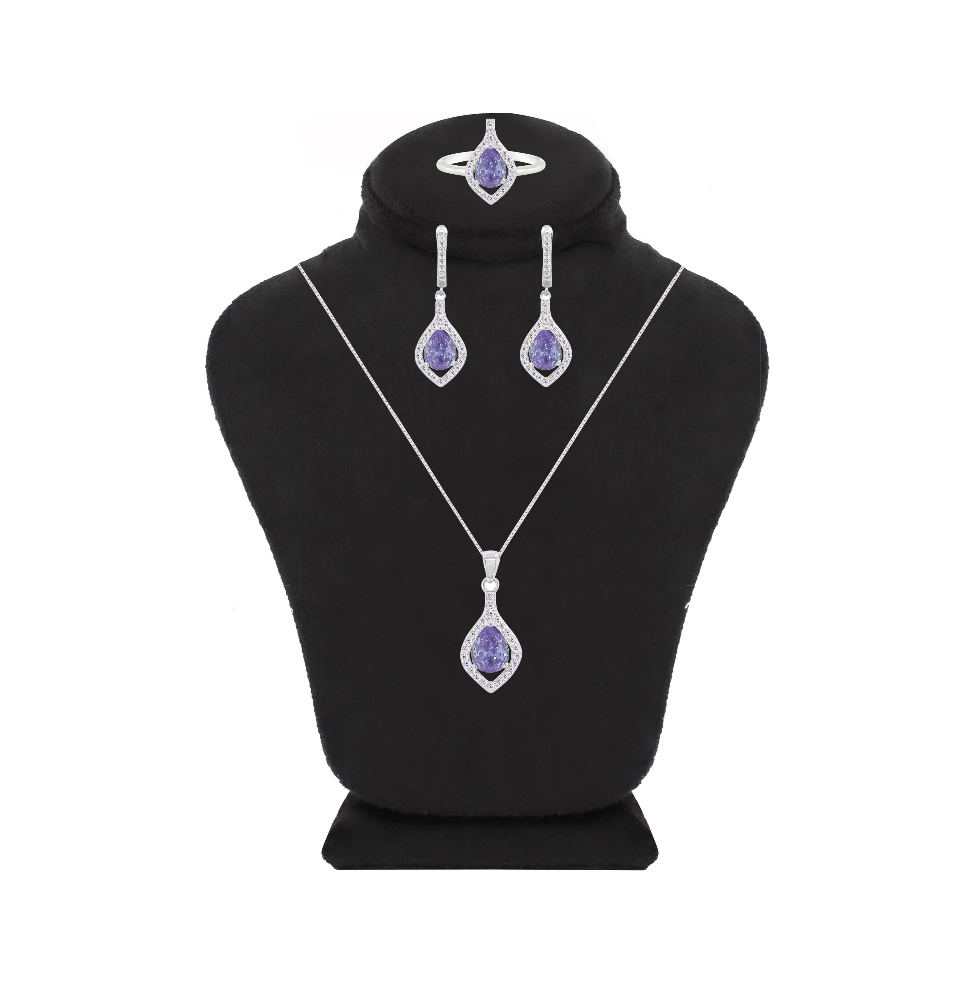 عصفور كريستال طقم فضة عيار 925 بتصميم فني زخرفي لون تنزانت مرصع بالزركون - SD0068-N-8