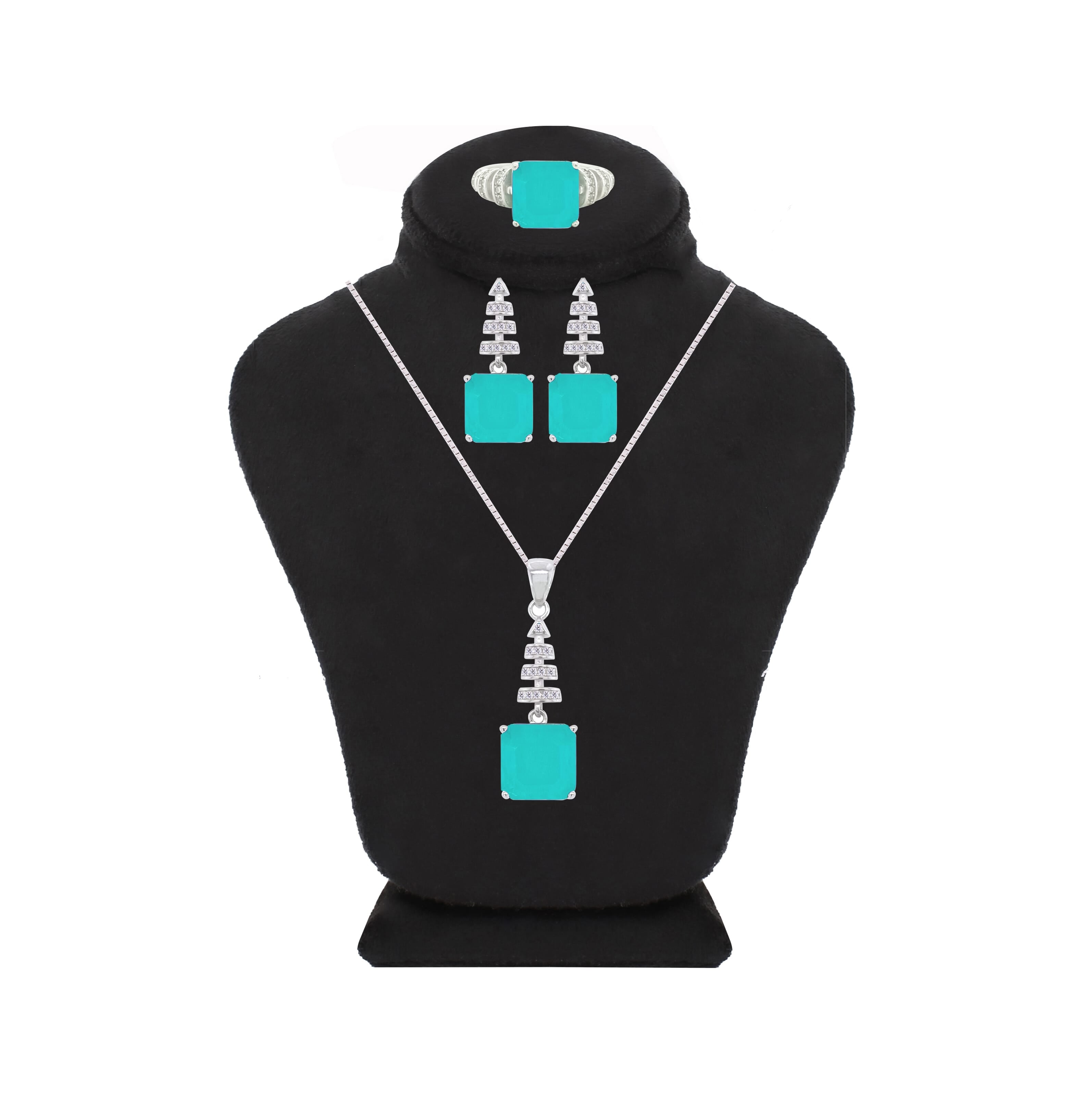 عصفور كريستال طقم فضة عيار 925 بتصميم مربع تركواز مرصع بالزركون - SD0061-GC-8