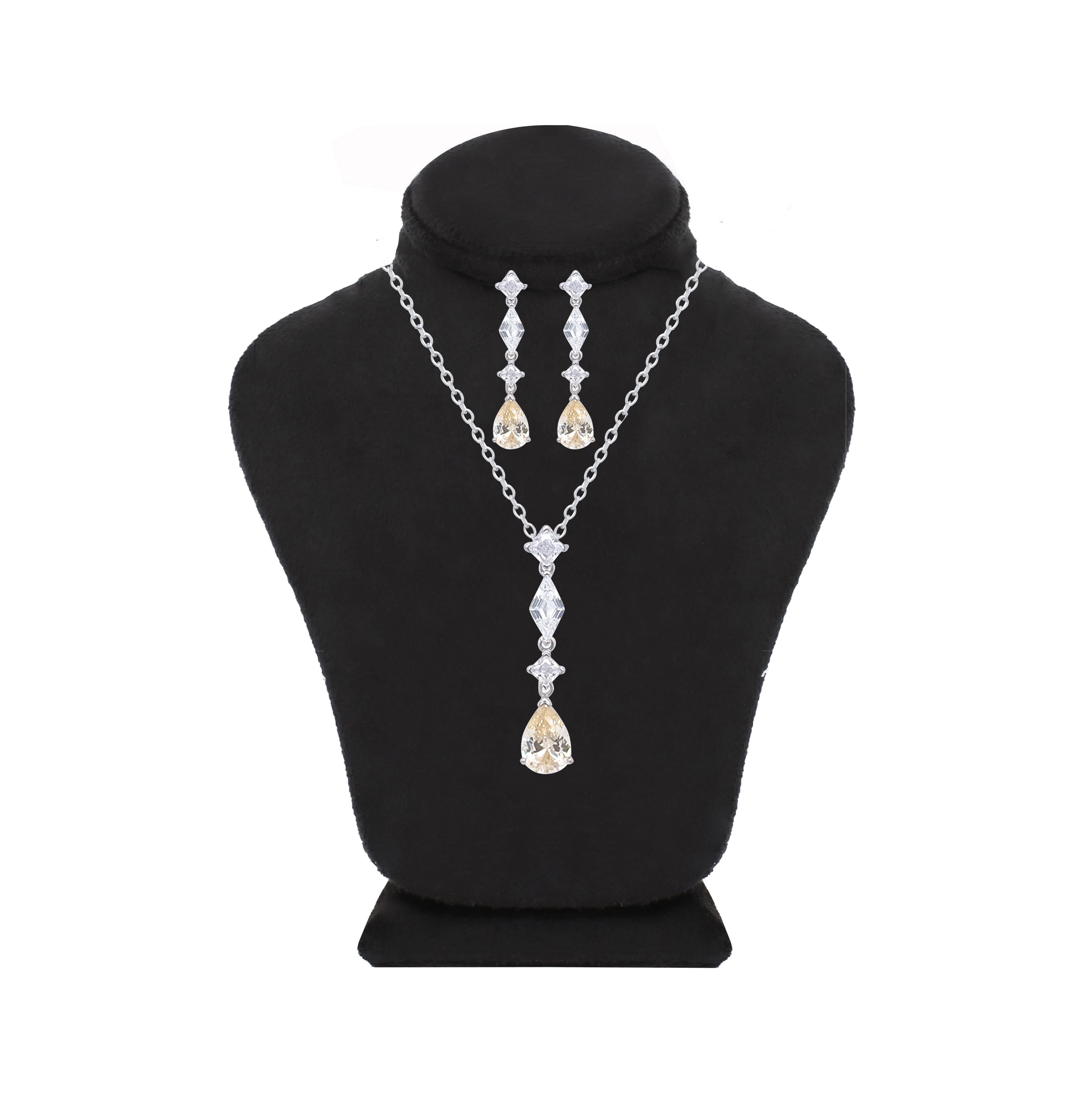 Asfour Crystal Jewelry Set With Yellow Decorative Pear Zircon In 925 Sterling Silver-SD0043-WY