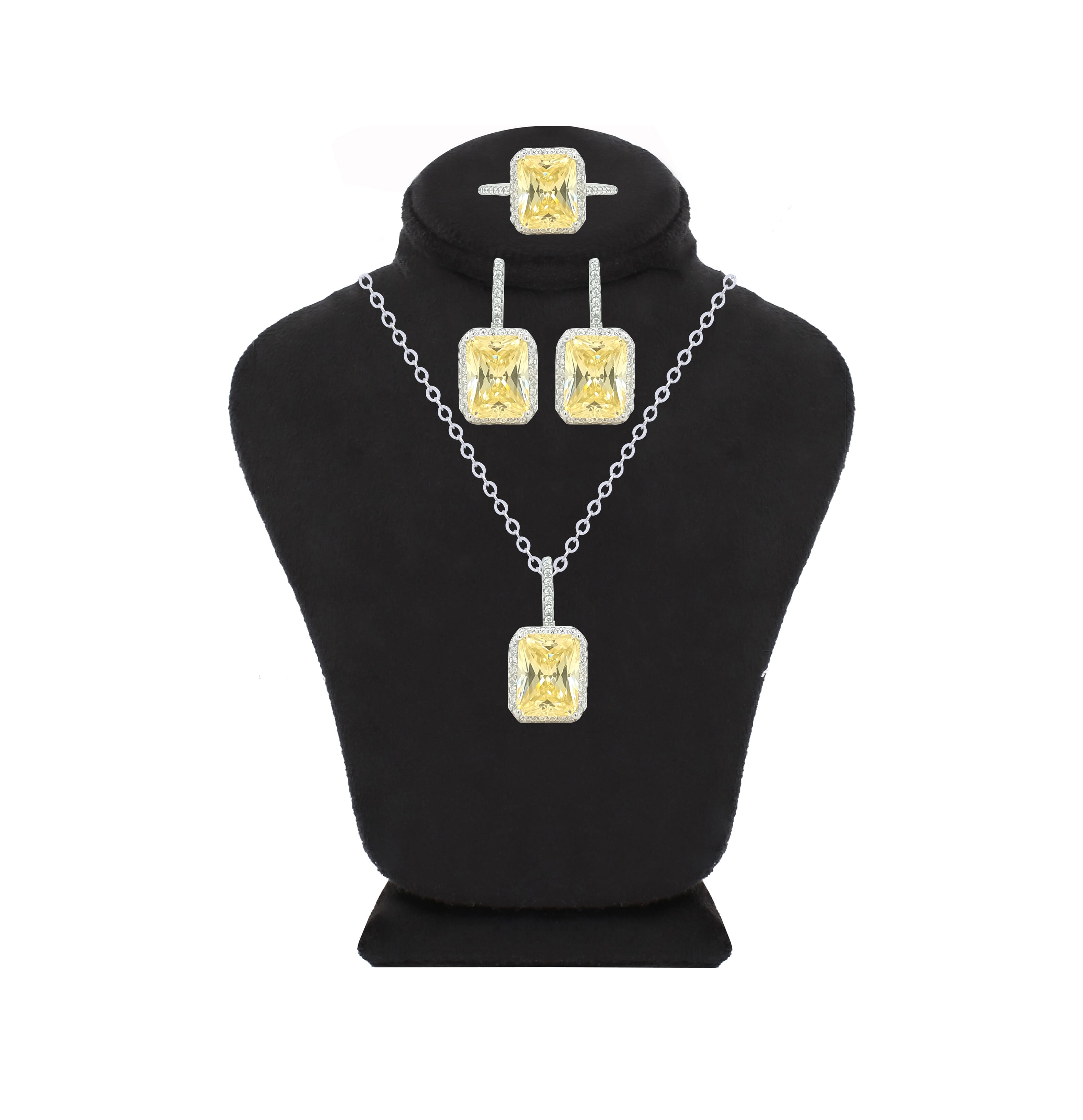 Asfour Crystal Jewelry Set With Yellow Emerald Design In 925 Sterling Silver-SD0030-Y-9