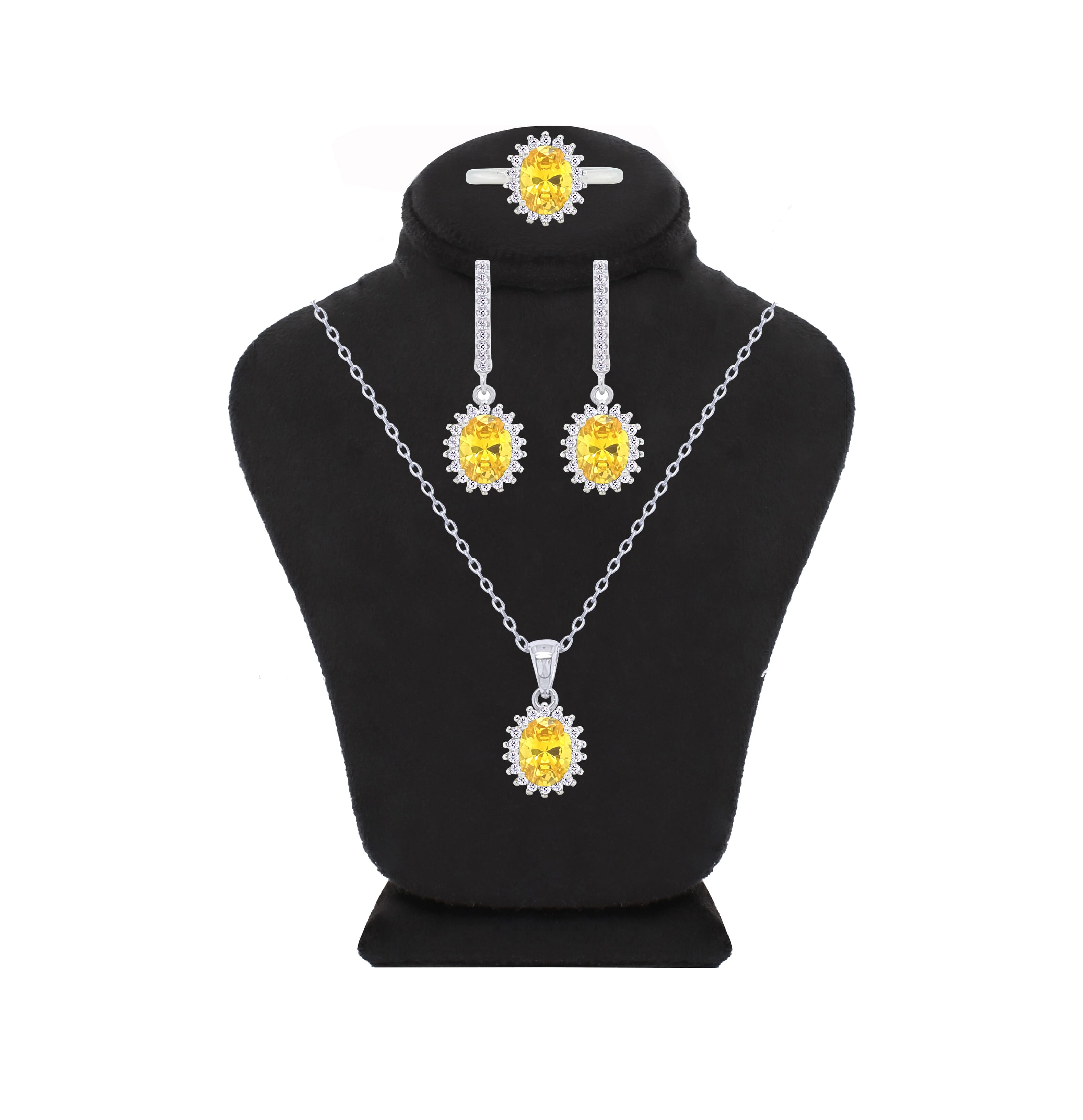 عصفور كريستال طقم فضة عيار 925 بتصميم بيضاوي اصفر مرصع بالزركون