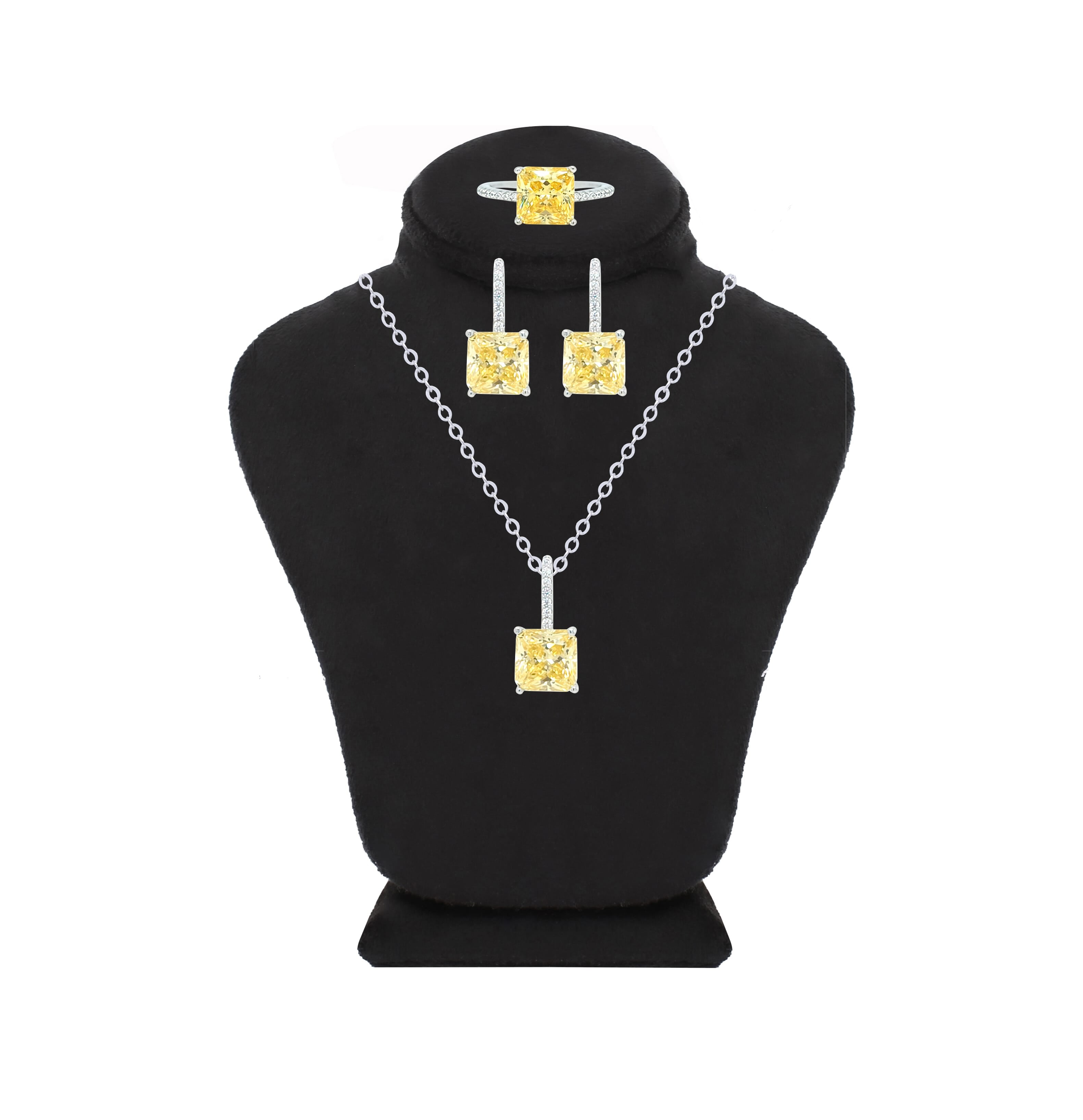 Asfour Crystal Jewelry Set With Yellow Square Design In 925 Sterling Silver-SD0031-Y-7