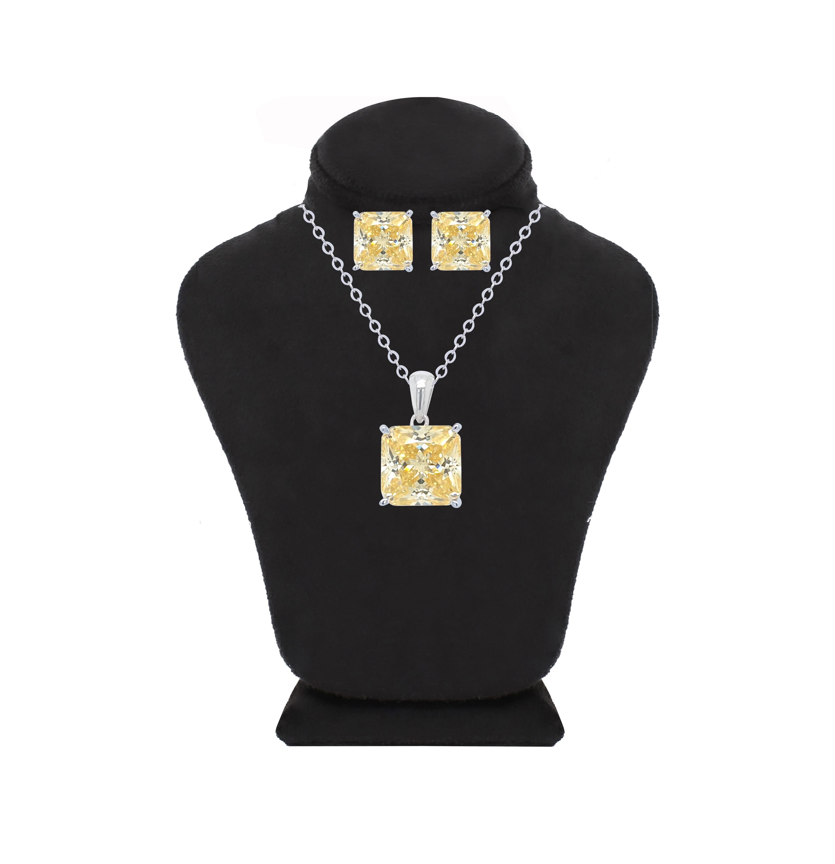 عصفور كريستال طقم فضة عيار 925 بتصميم مربع زركون لون اصفر - SD0044-Y