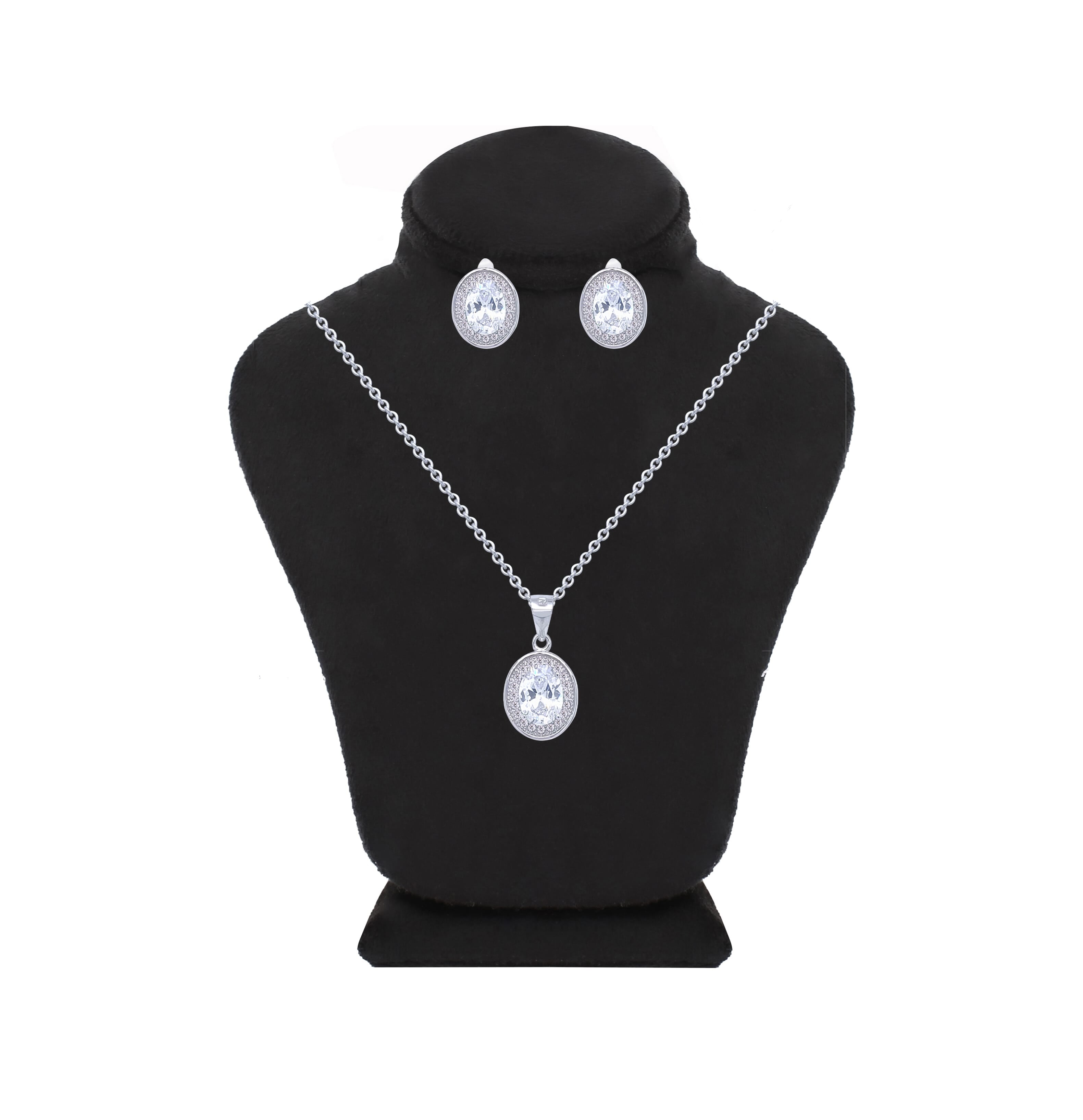 عصفور كريستال طقم فضة عيار 925 بتصميم بيضاوي مرصع بالزركون - SM0032