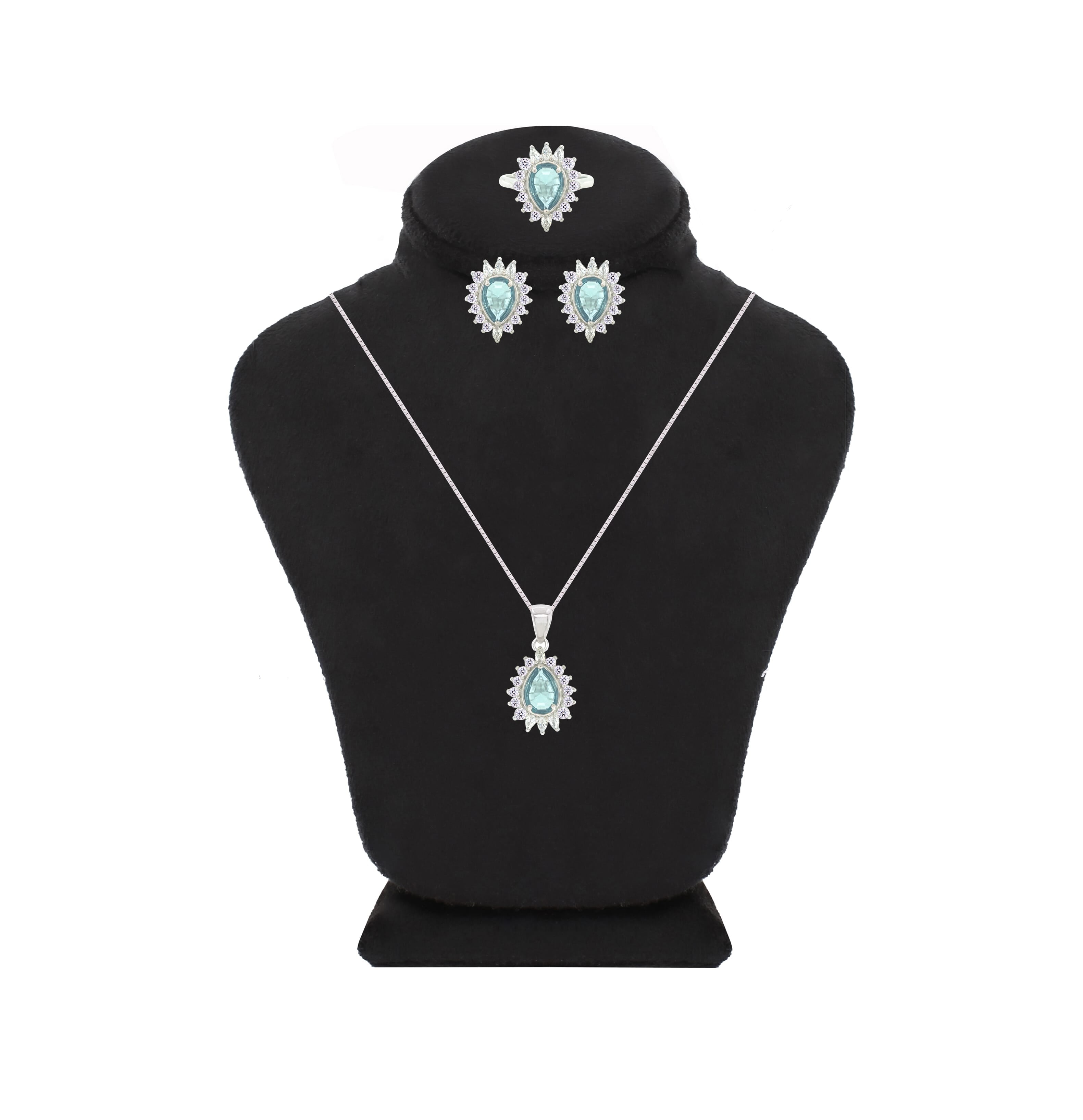عصفور كريستال طقم فضة عيار 925 بتصميم كمثري لون زركون فاتح مرصع بفصوص الزركون - SD0080-LZ-7