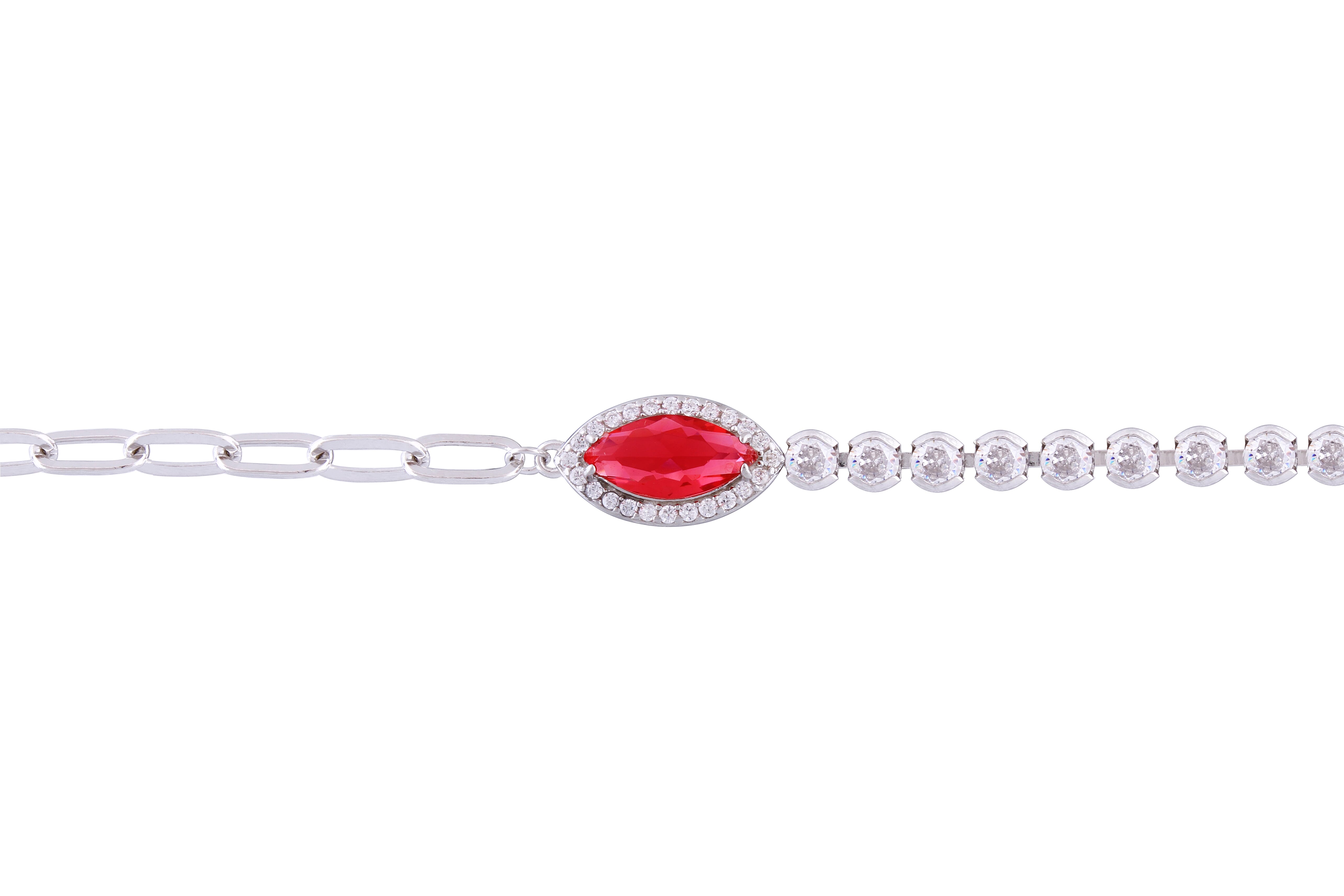 Asfour Crystal Paperclip Tennis Bracelet With Dark Rose Marquise Stone In 925 Sterling Silver-BD0014-O5W