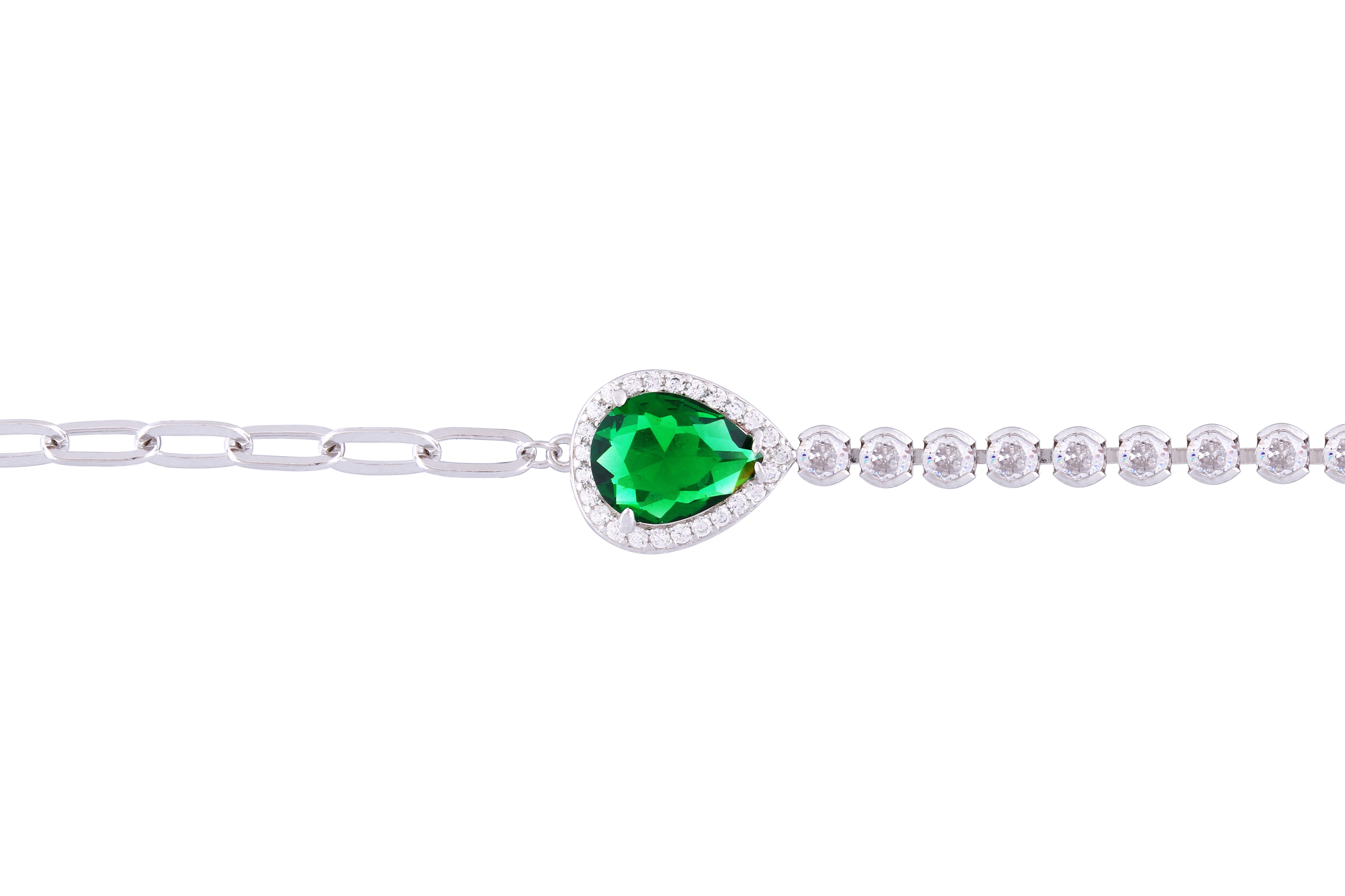 Asfour Crystal Paperclip Tennis Bracelet With Emerald Pear Design In 925 Sterling Silver-BD0013-GW