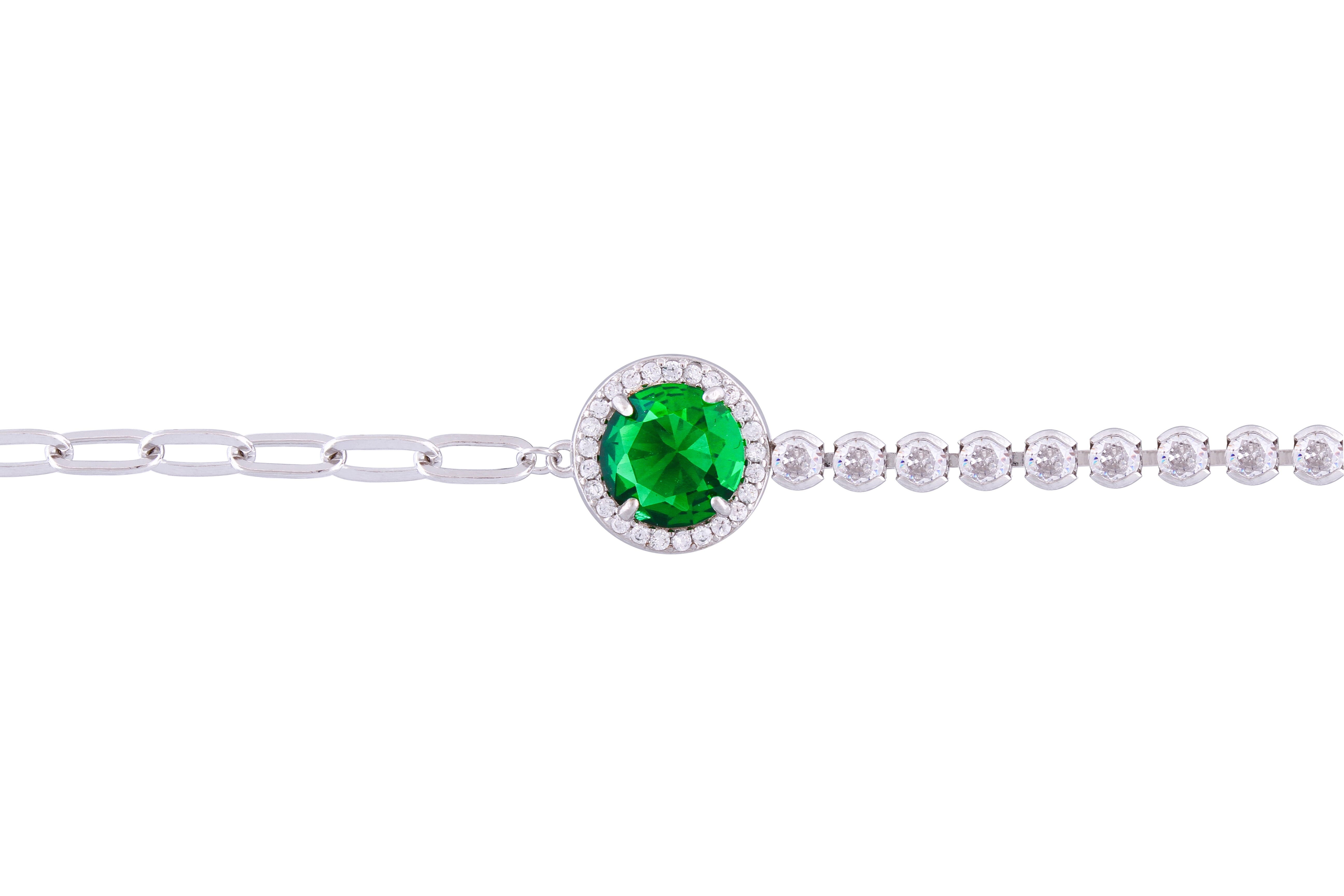 Asfour Crystal Paperclip Tennis Bracelet With Emerald Round Design In 925 Sterling Silver-BD0011-GW