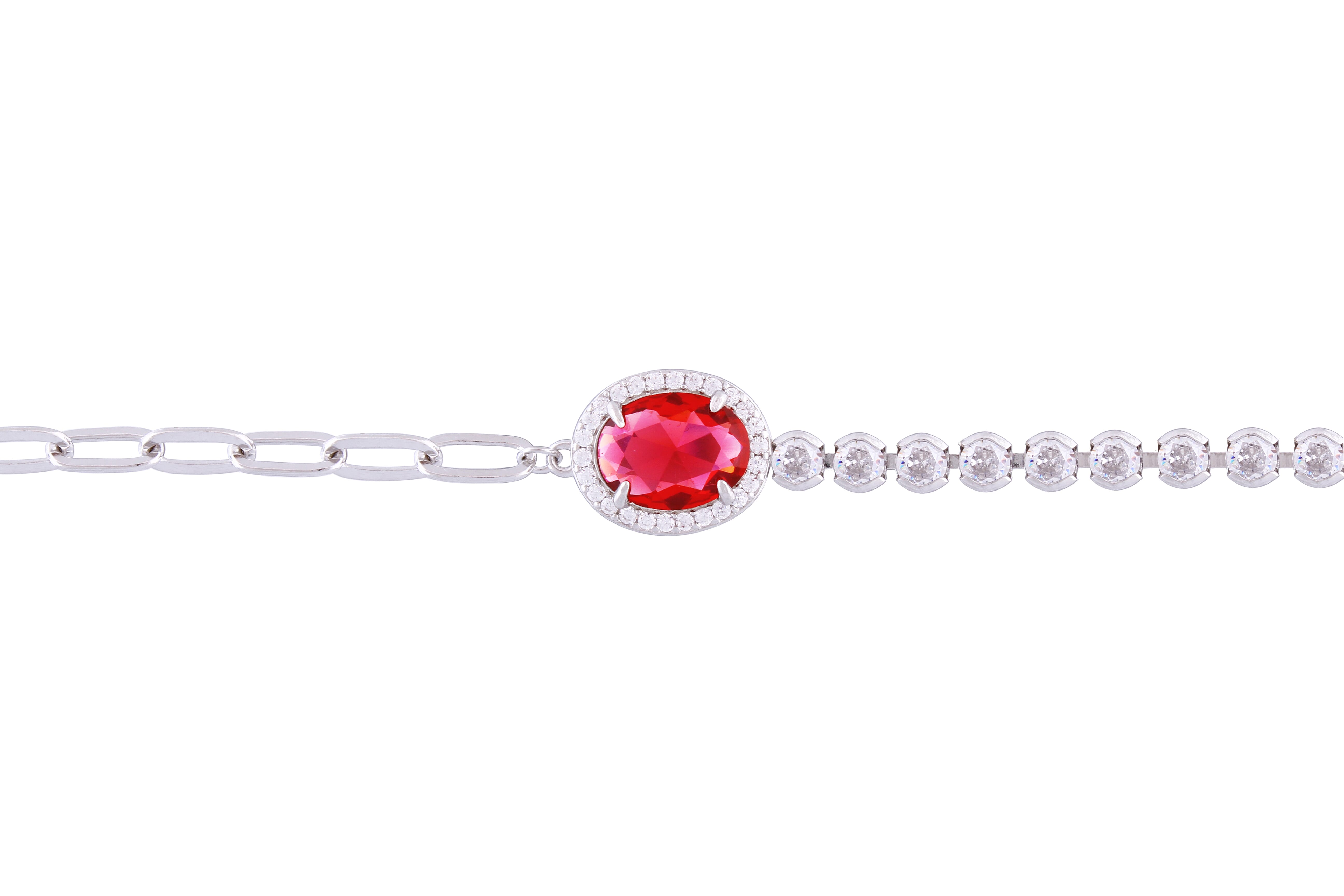 عصفور كريستال انسيال فضة عيار 925 علي شكل بيضاوي احمر مرصع بالزركون - BD0010-RW