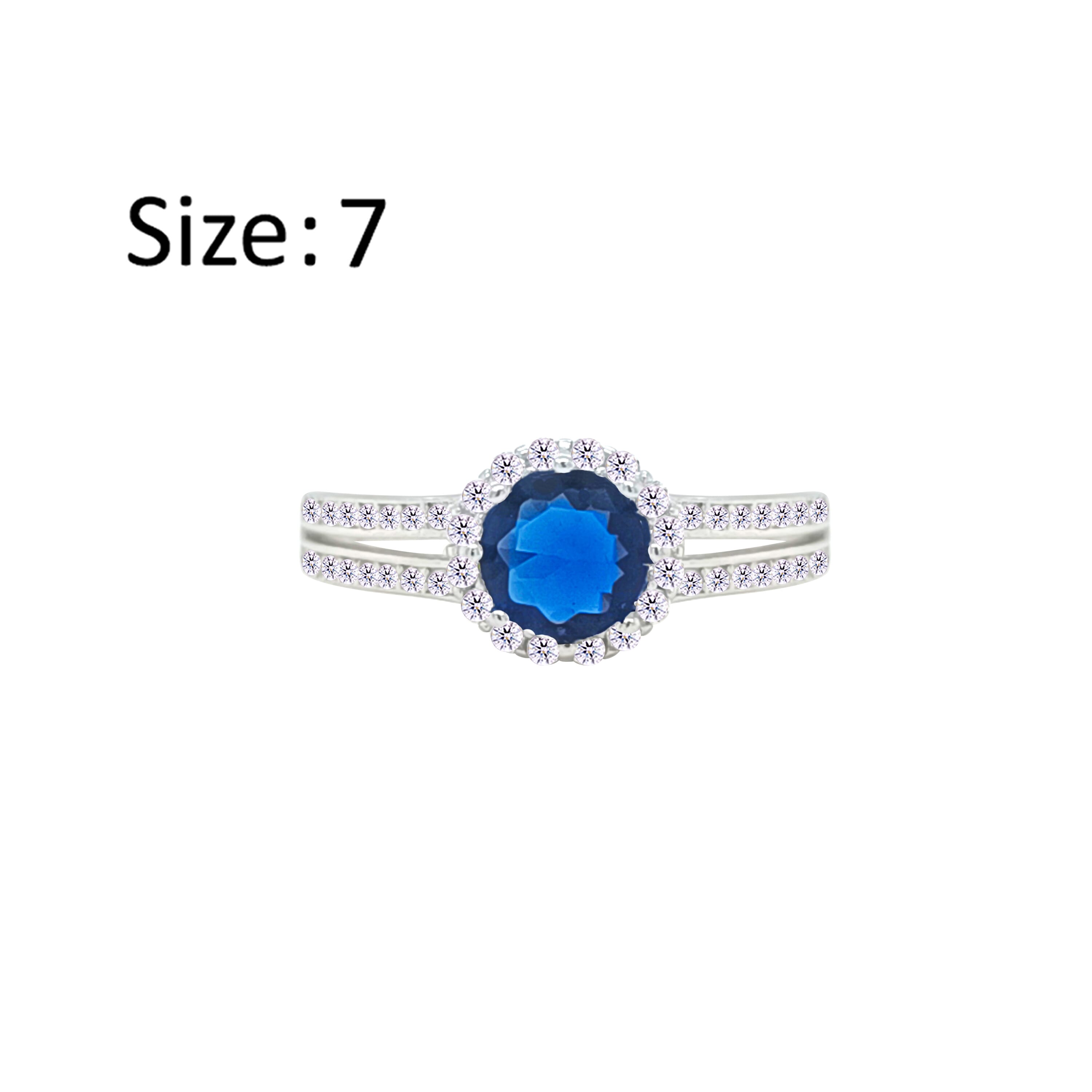 عصفور كريستال خاتم فضة عيار 925 بتصميم دائري ازرق مرصع بالزركون RM0113-B-7