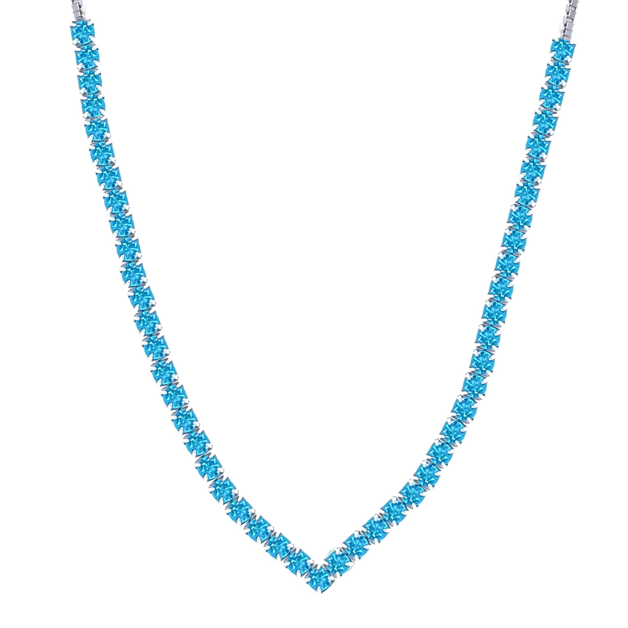 عصفور كريستال عقد فضة تنس عيار 925 مرصع بفصوص زركون اكوامارين - ND0398-M
