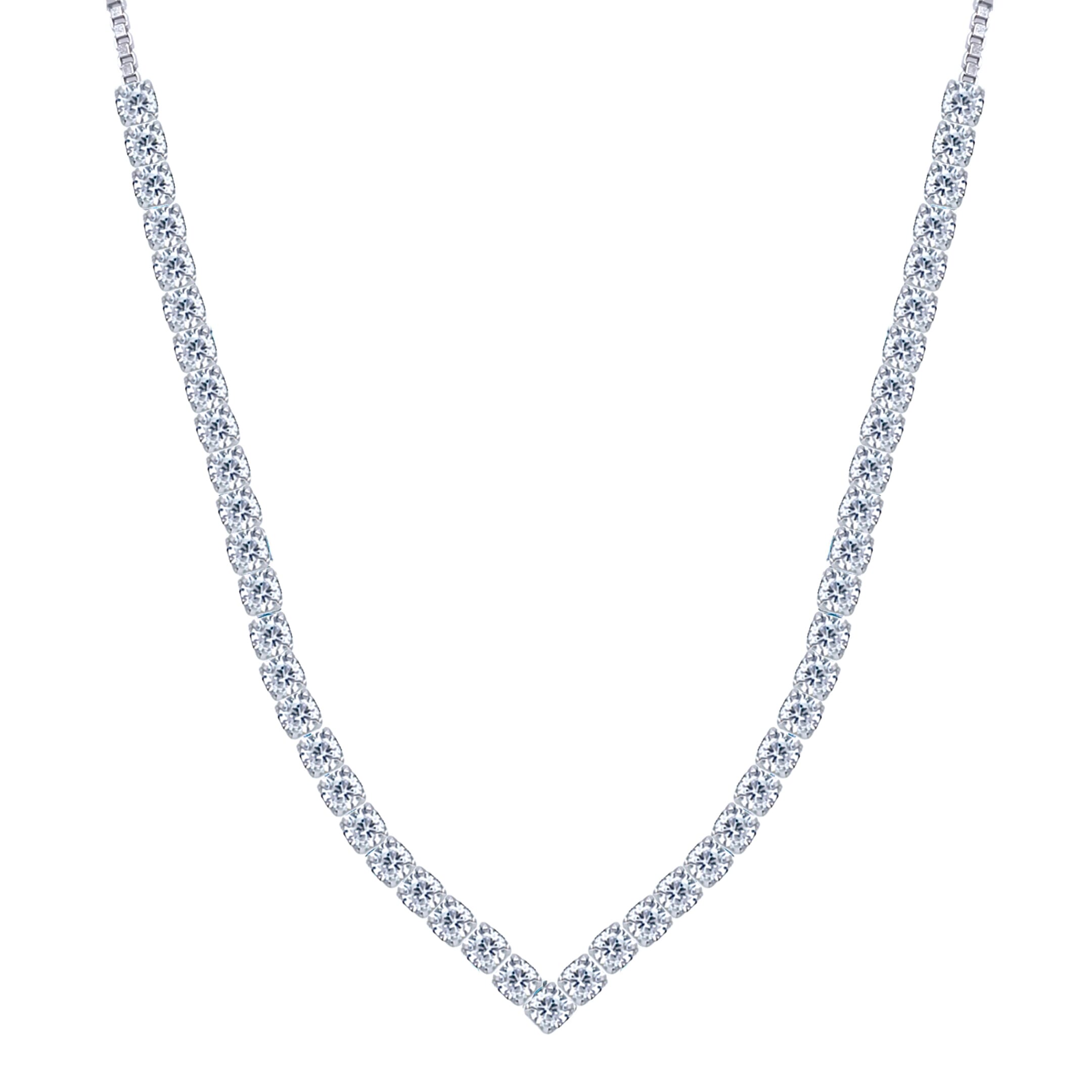 Asfour Crystal Tennis Necklace With Round Zircon Stones In 925 Sterling Silver-ND0398