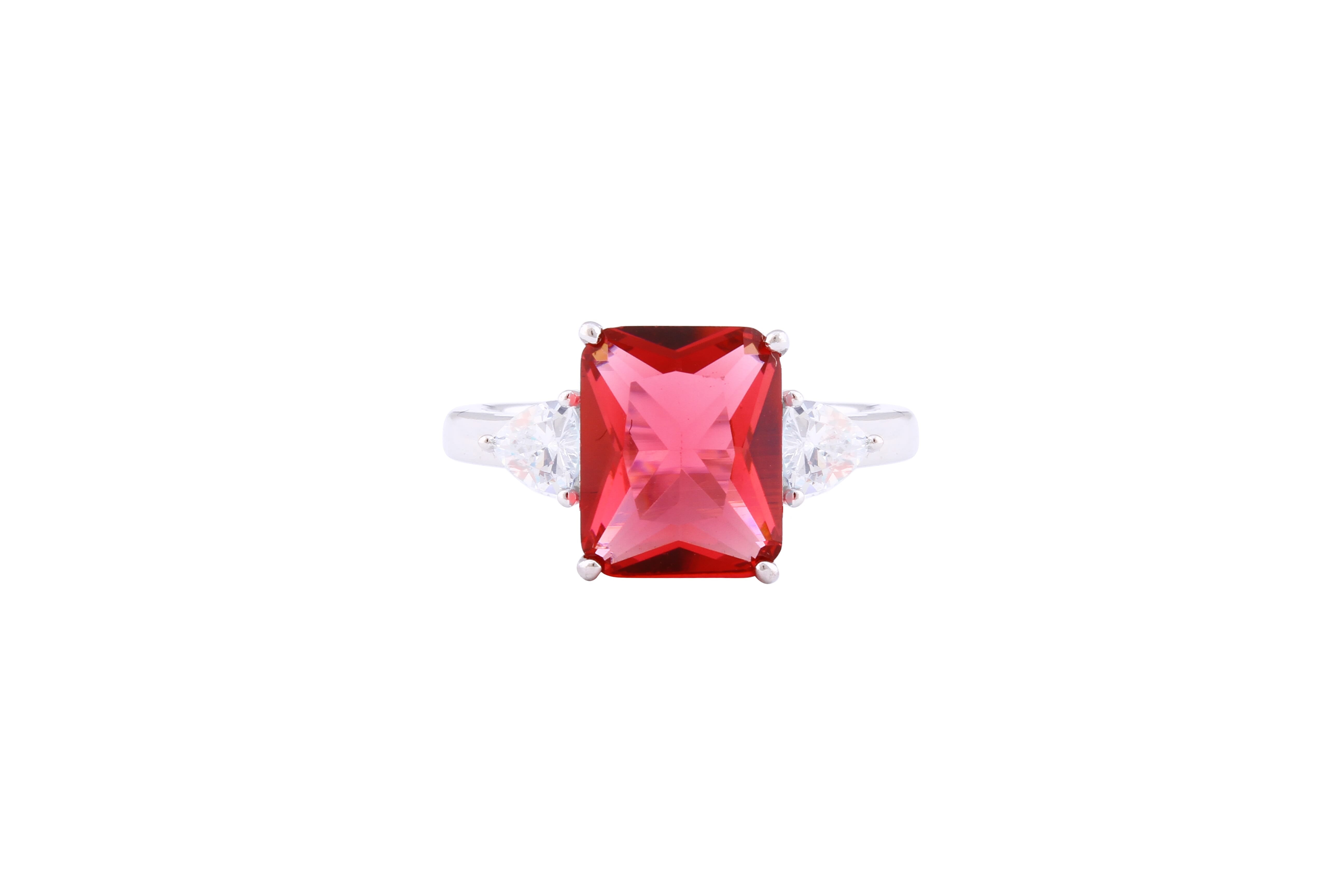 عصفور كريستال خاتم فضة عيار 925 بتصميم اميرالد احمر مرصع بالزركون - RD0143-R-7