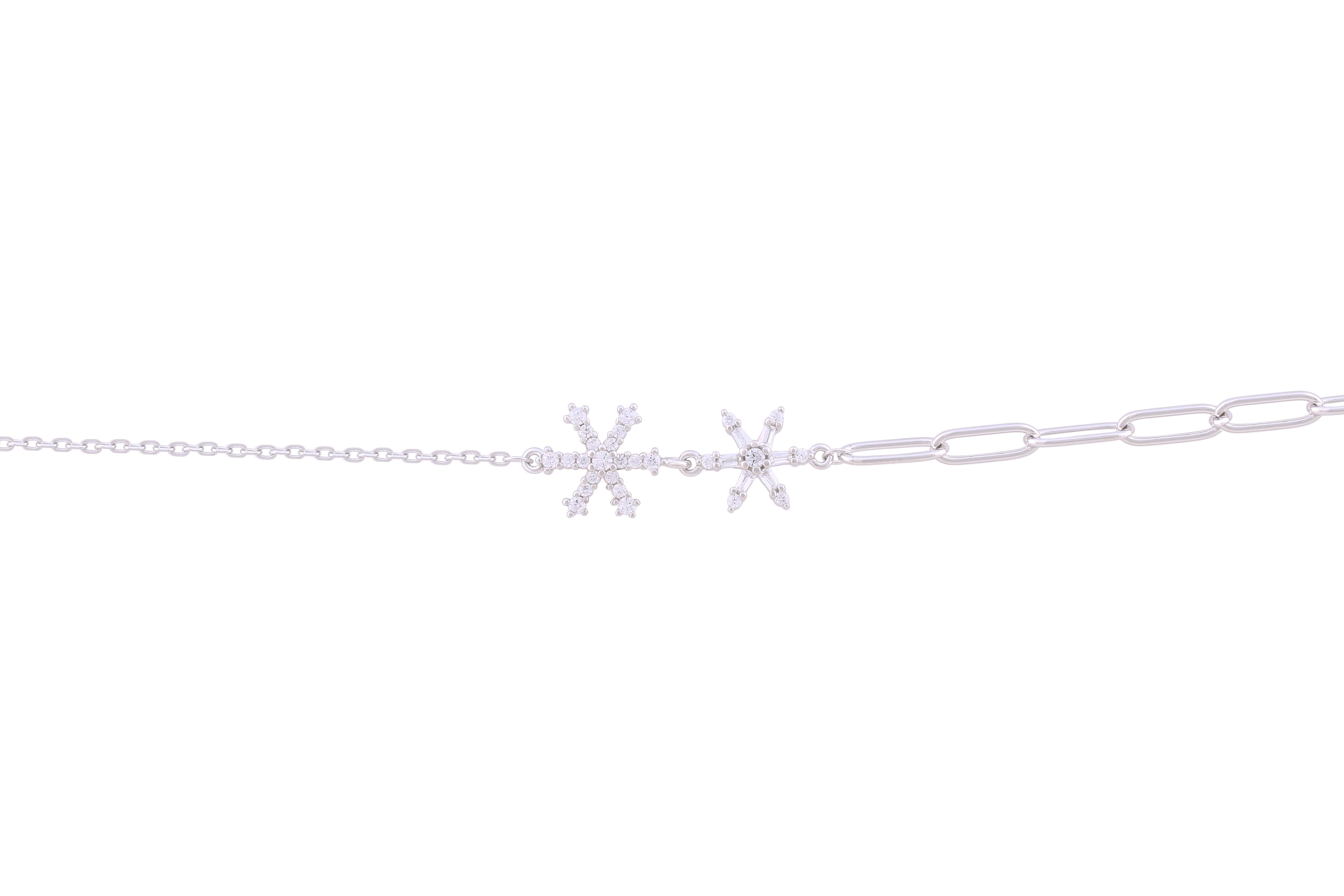 Asfour Curb & Paperclip Chain Bracelet With Snowflake Design In 925 Sterling Silver BR0477