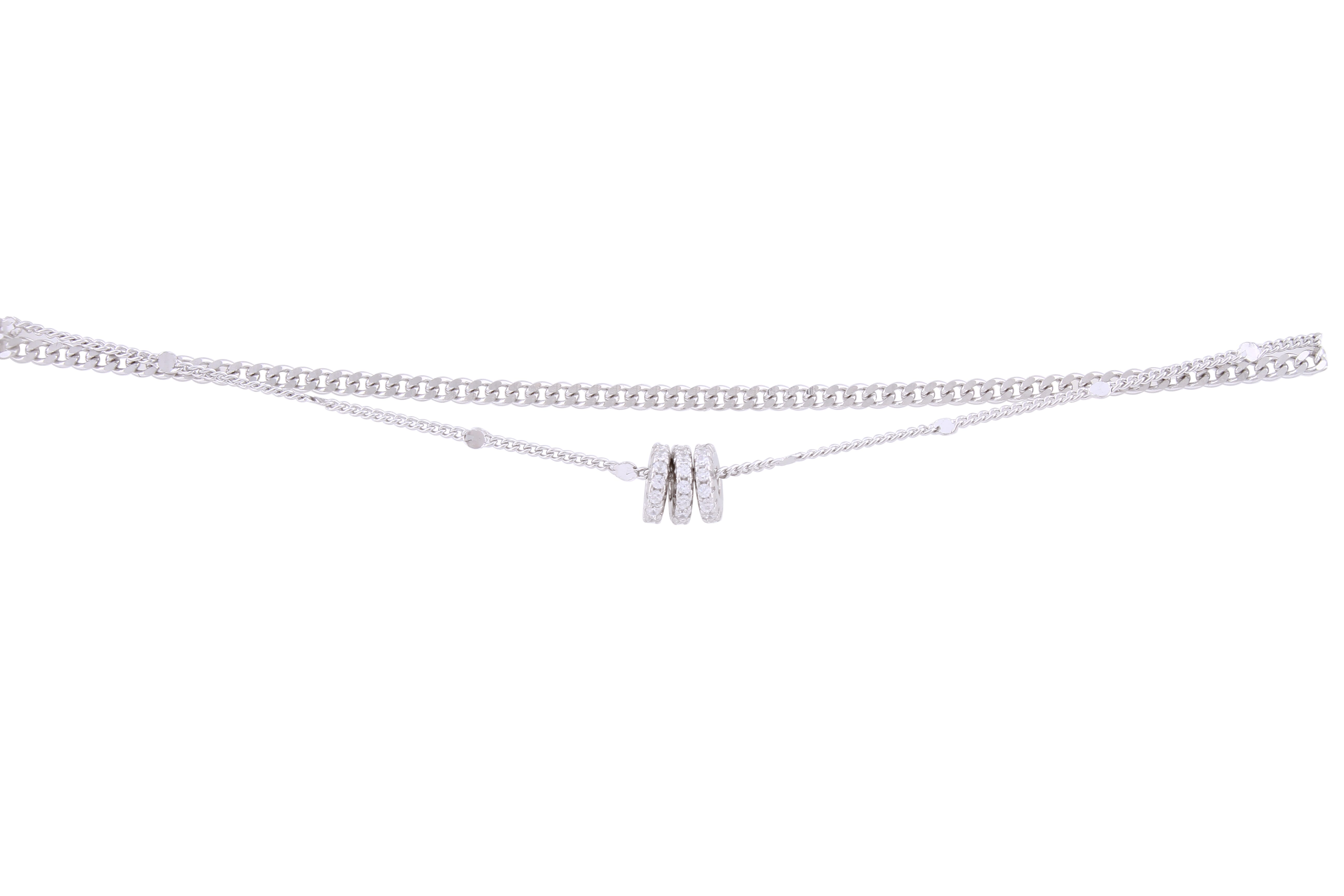 Asfour Double Layer Bracelet Inlaid With Round Zircon Stones In 925 Sterling Silver BR0478