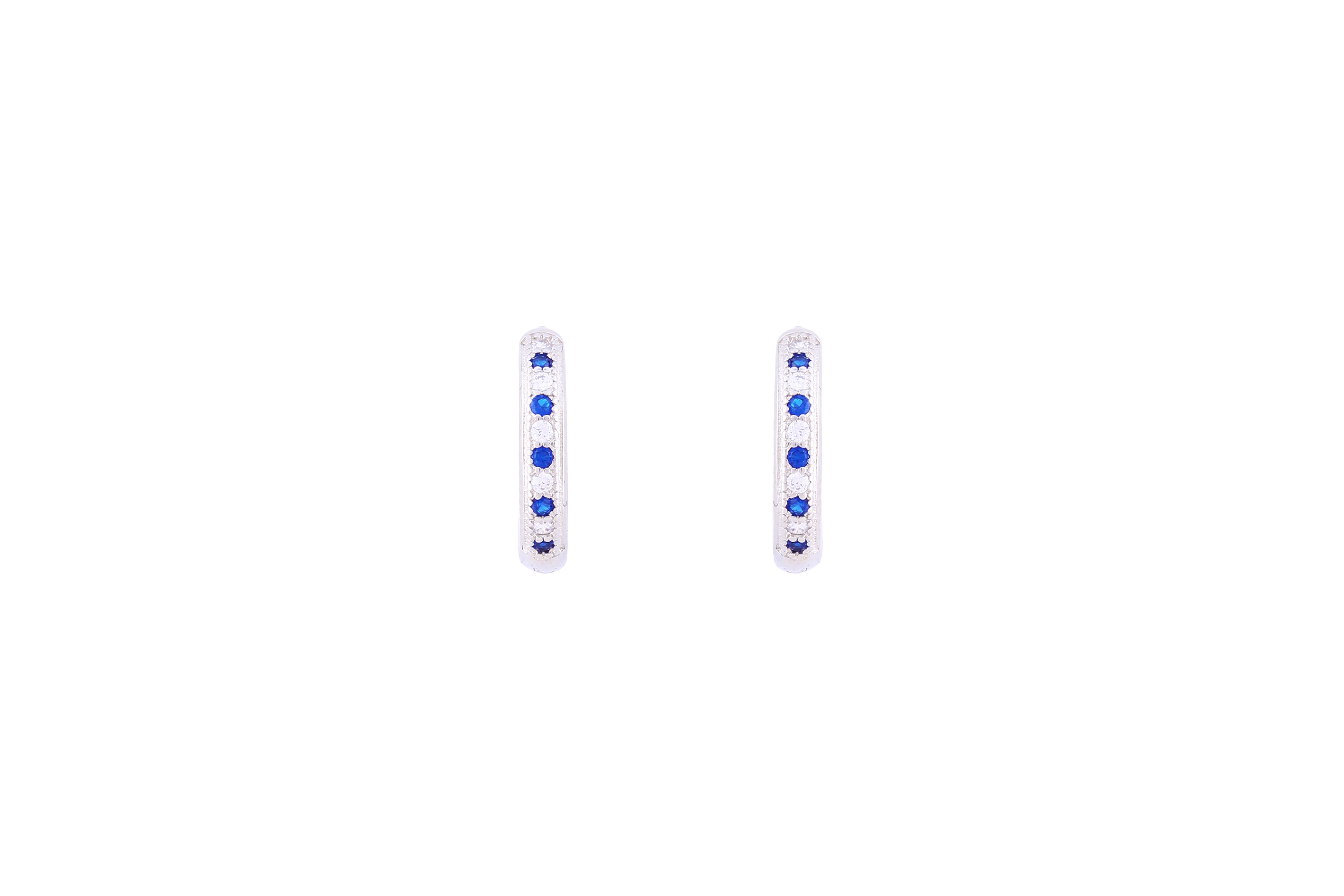 Asfour Huggie Hoop Earring With Round Blue & White Stones