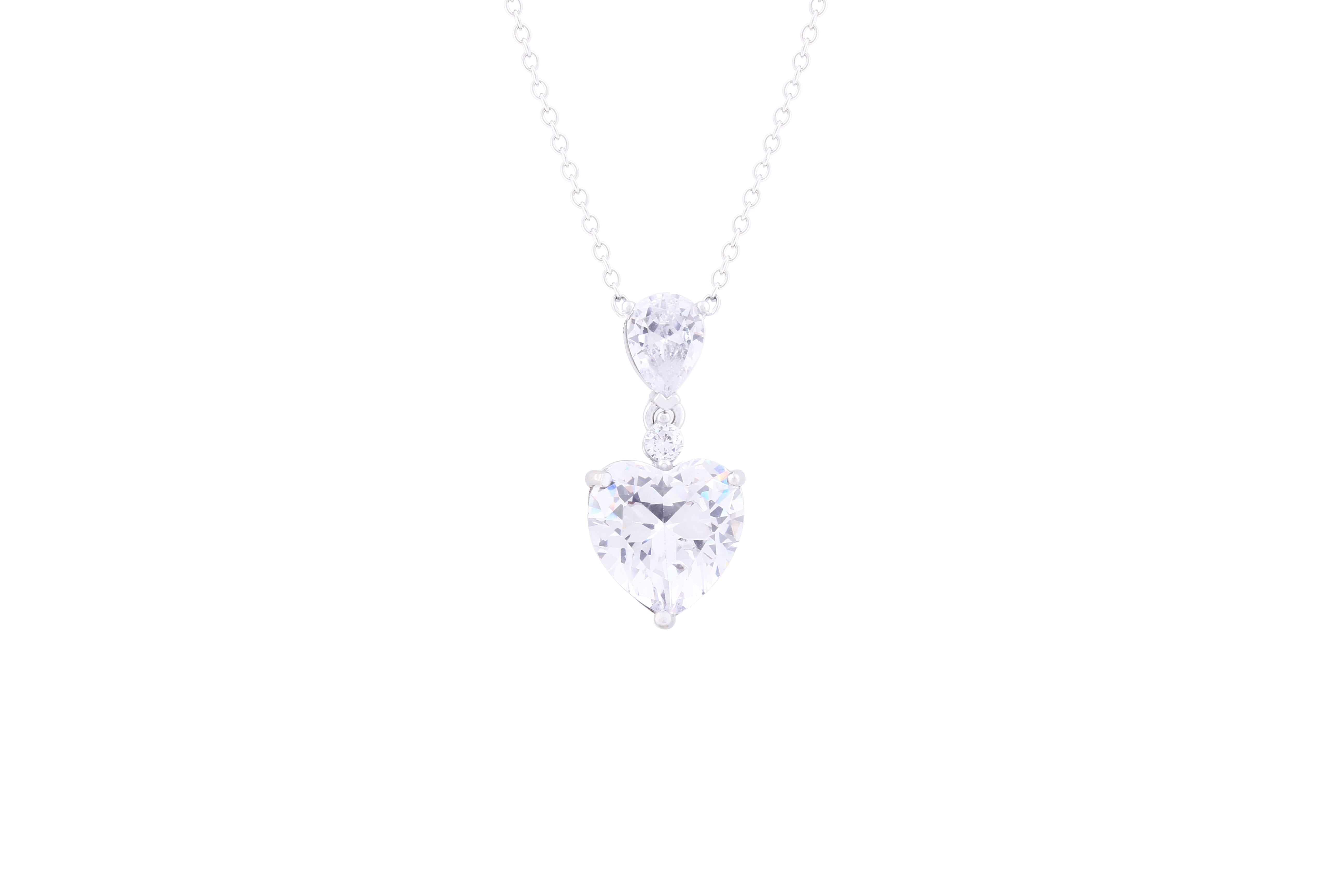 Asfour Sterling Silver Heart necklace Inlaid With Zircon Stones ND0005