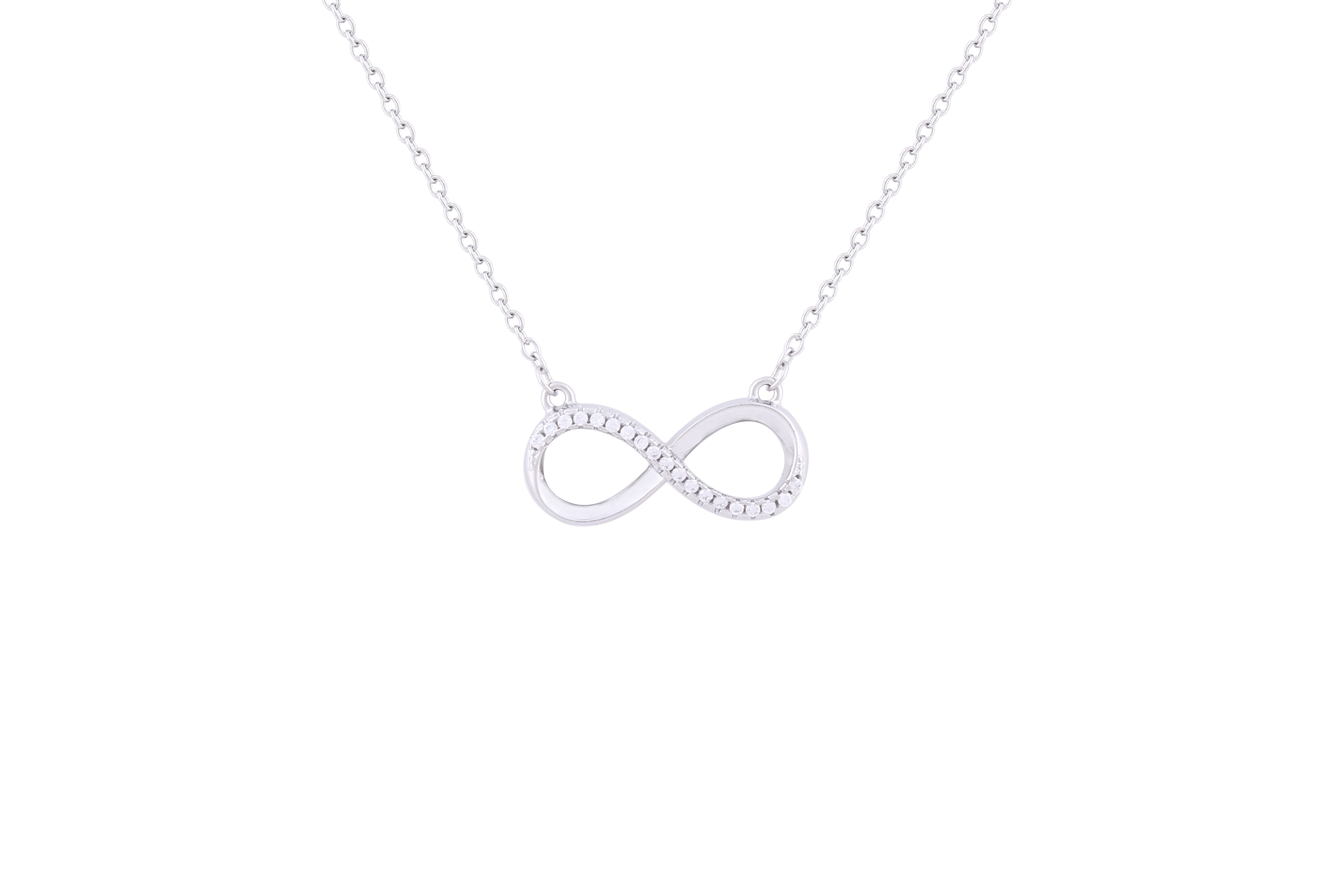 Asfour Sterling Silver Infinity Necklace Inlaid With Zircon Stones ND0015