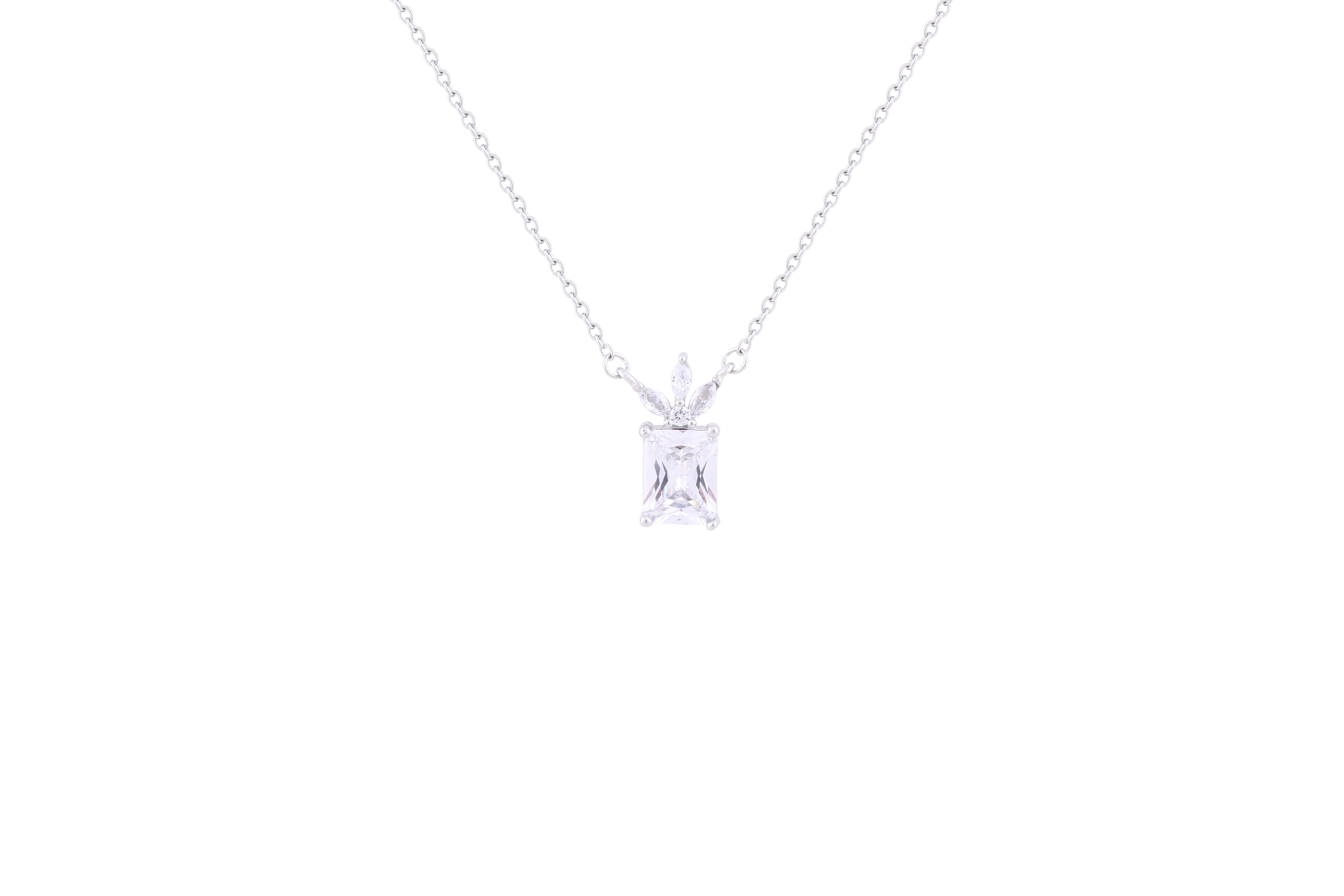 Asfour Sterling Silver Necklace With Rectangular Pendant Inlaid With Zircon Stones ND0014