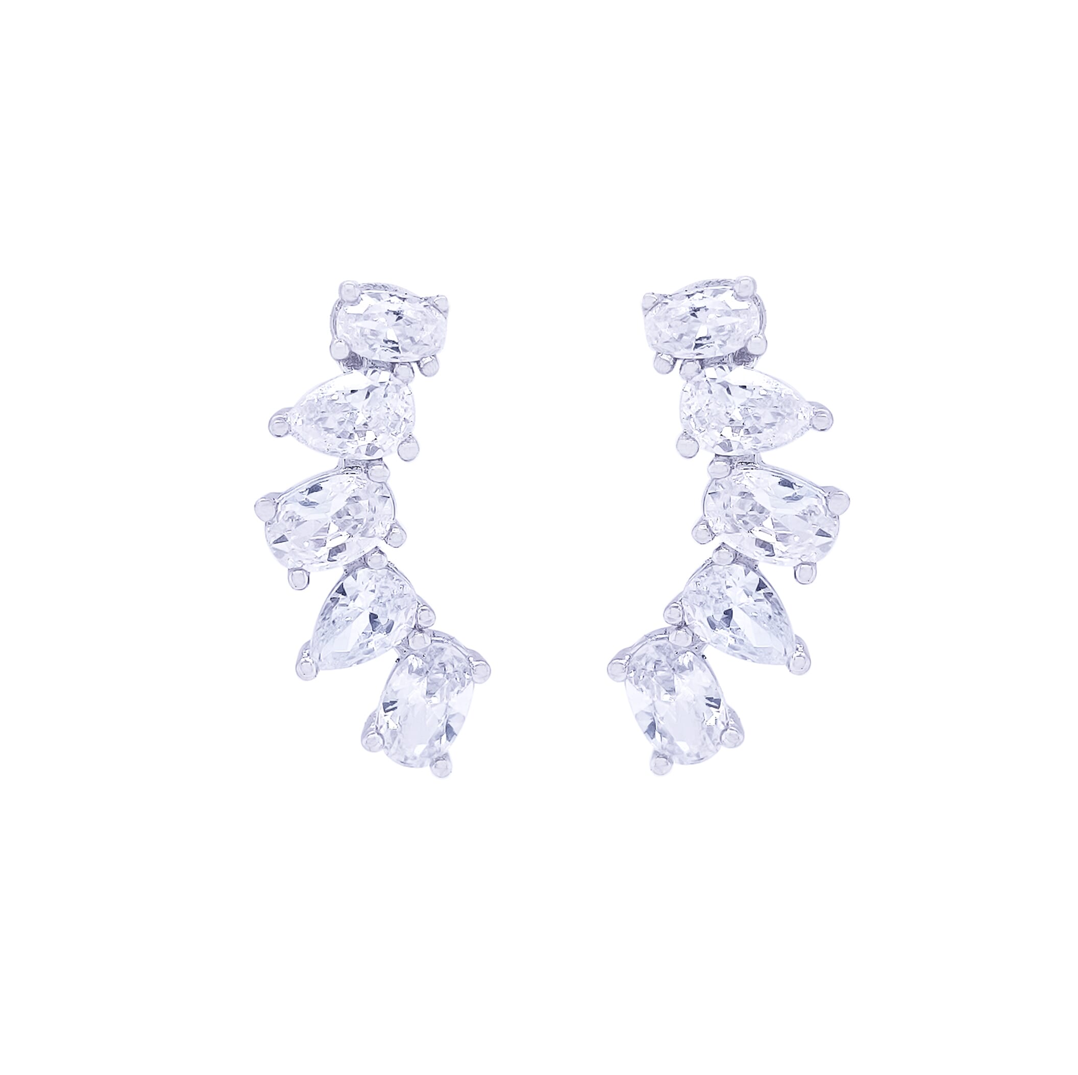 Asfour Stud Earring Made Of 925 Sterling Silver With A Design Of Three Oval Stones And Two Alternating Pear-shaped Stones