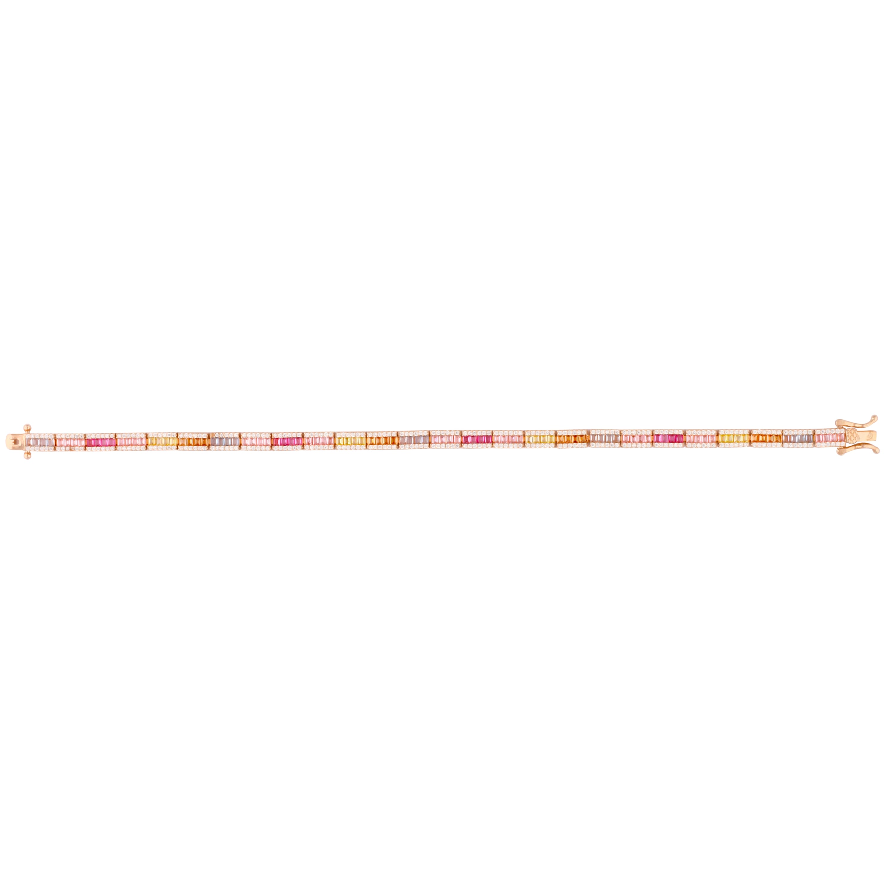 Asfour Tennis Bracelet In 925 Sterling Silver Stone Zircon Baguette And Round