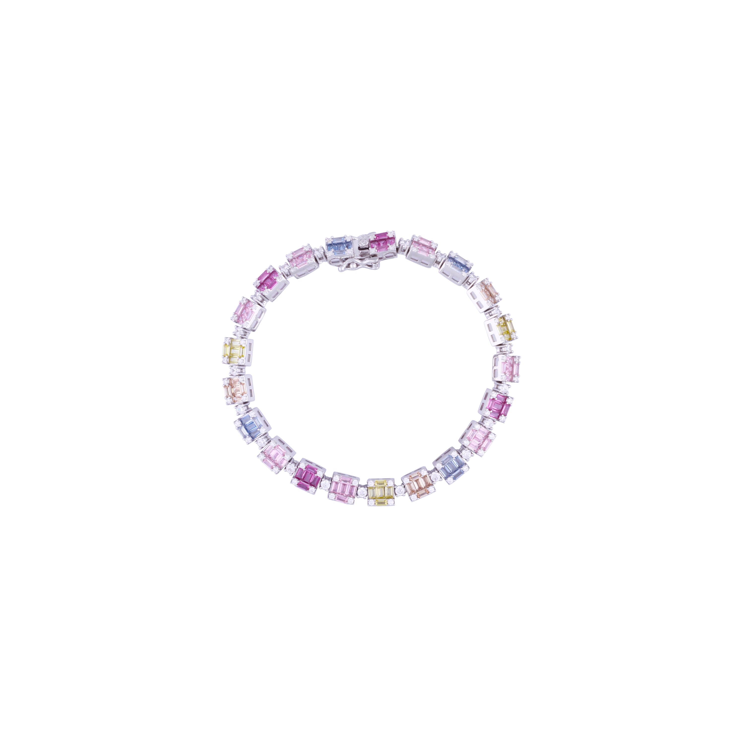 Asfour Tennis Bracelet In 925 Sterling Silver Stone Zircon Baguette And Square