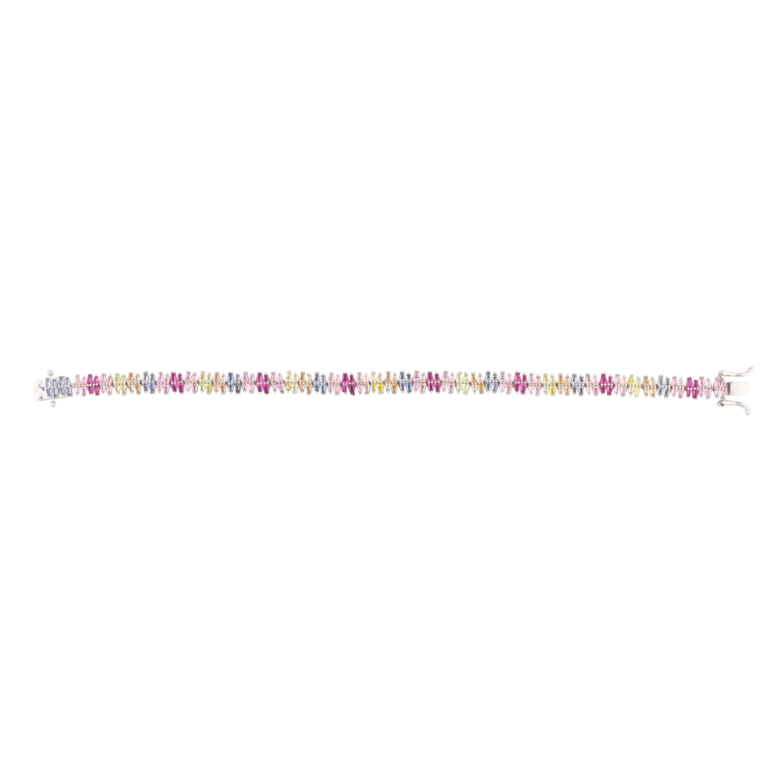 Asfour Tennis Bracelet In 925 Sterling Silver Stone Zircon Baguette