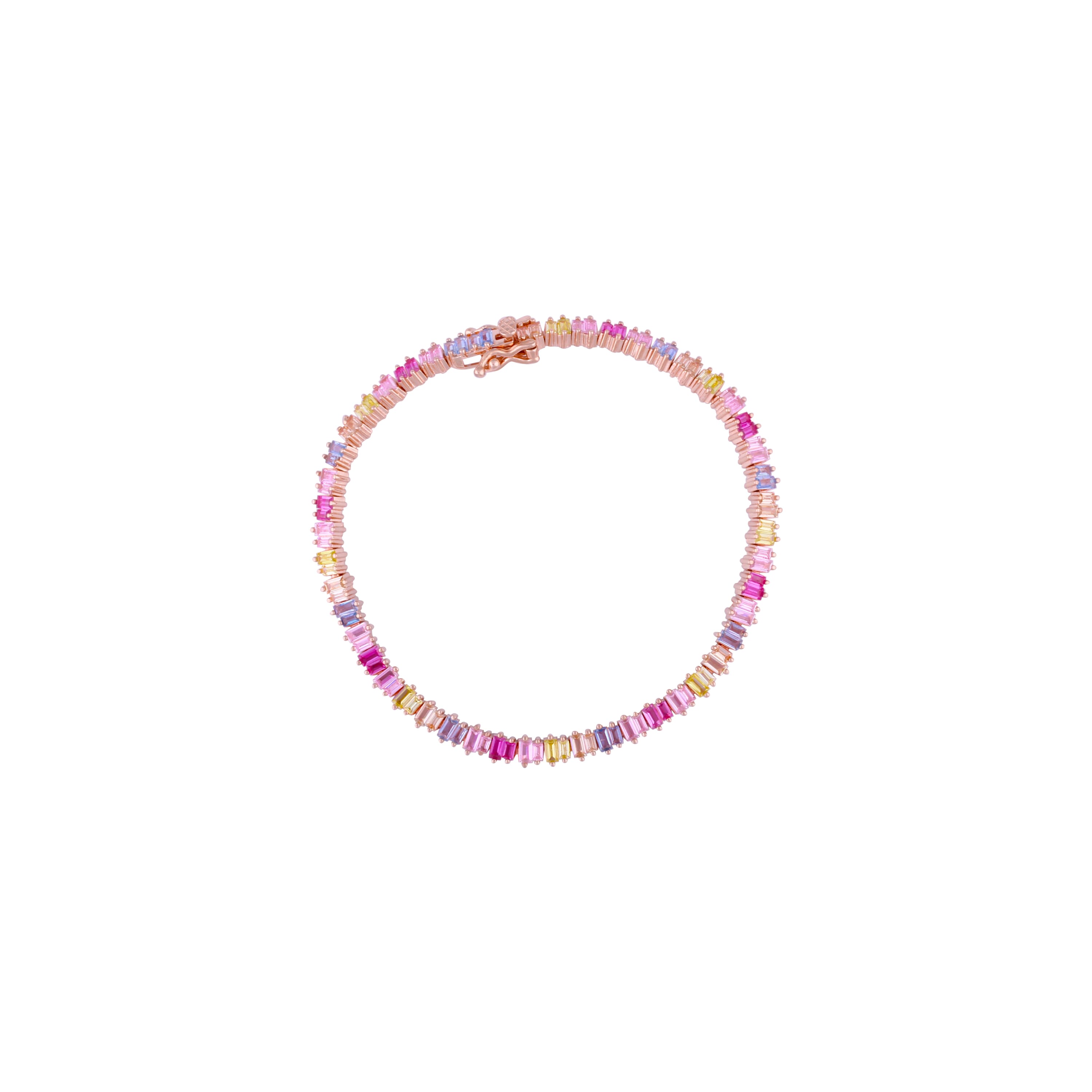 Asfour Tennis Bracelet In 925 Sterling Silver Stone Zircon Baguette